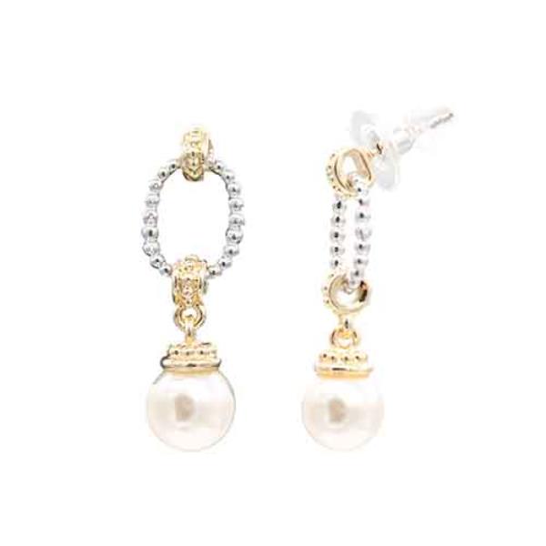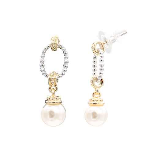 TEXTURED METAL PEARL ACCENT DANGLE EARRING