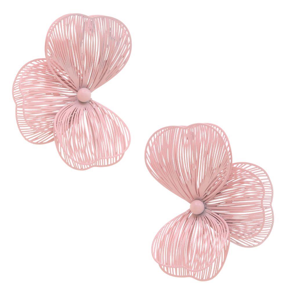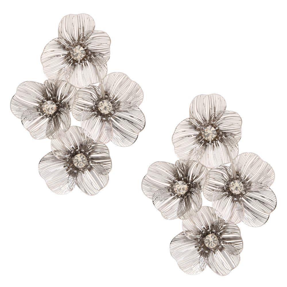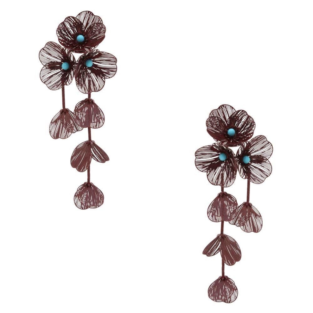 DOUBLE FLOWER OVAL METAL DANGLE EARRING