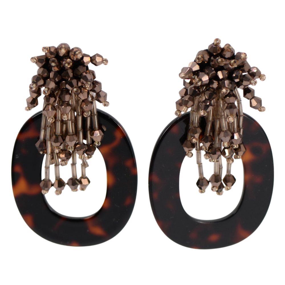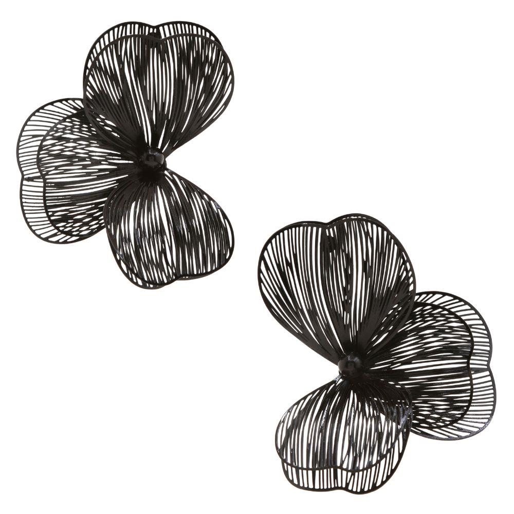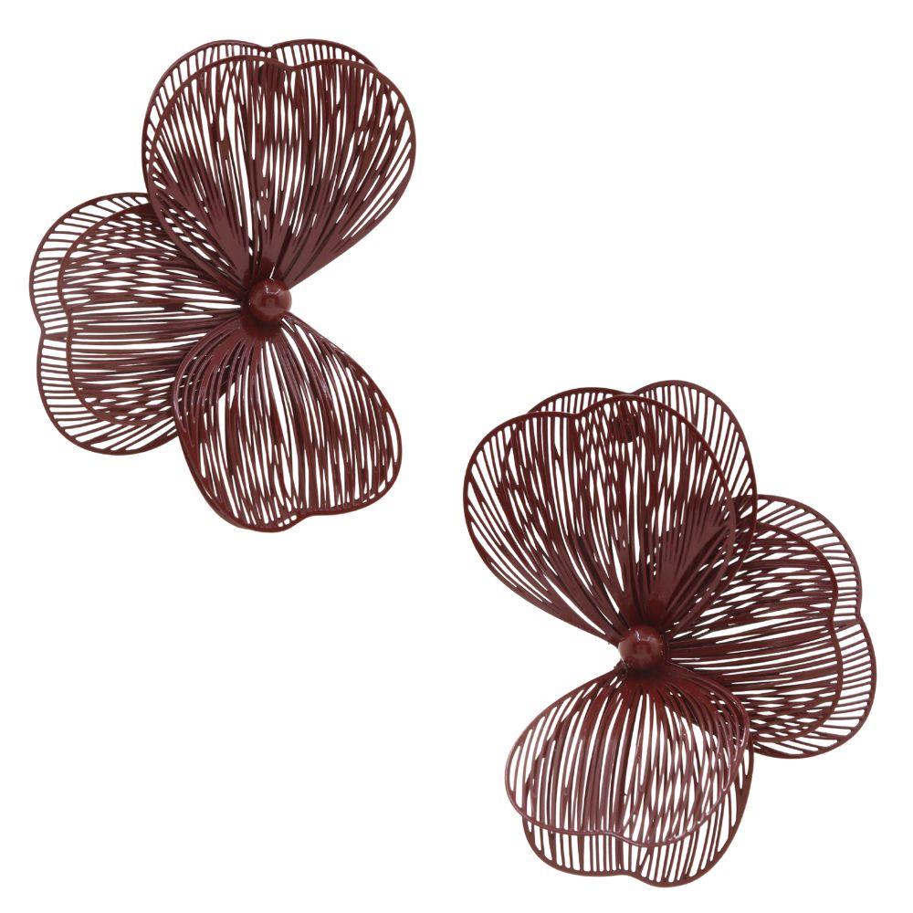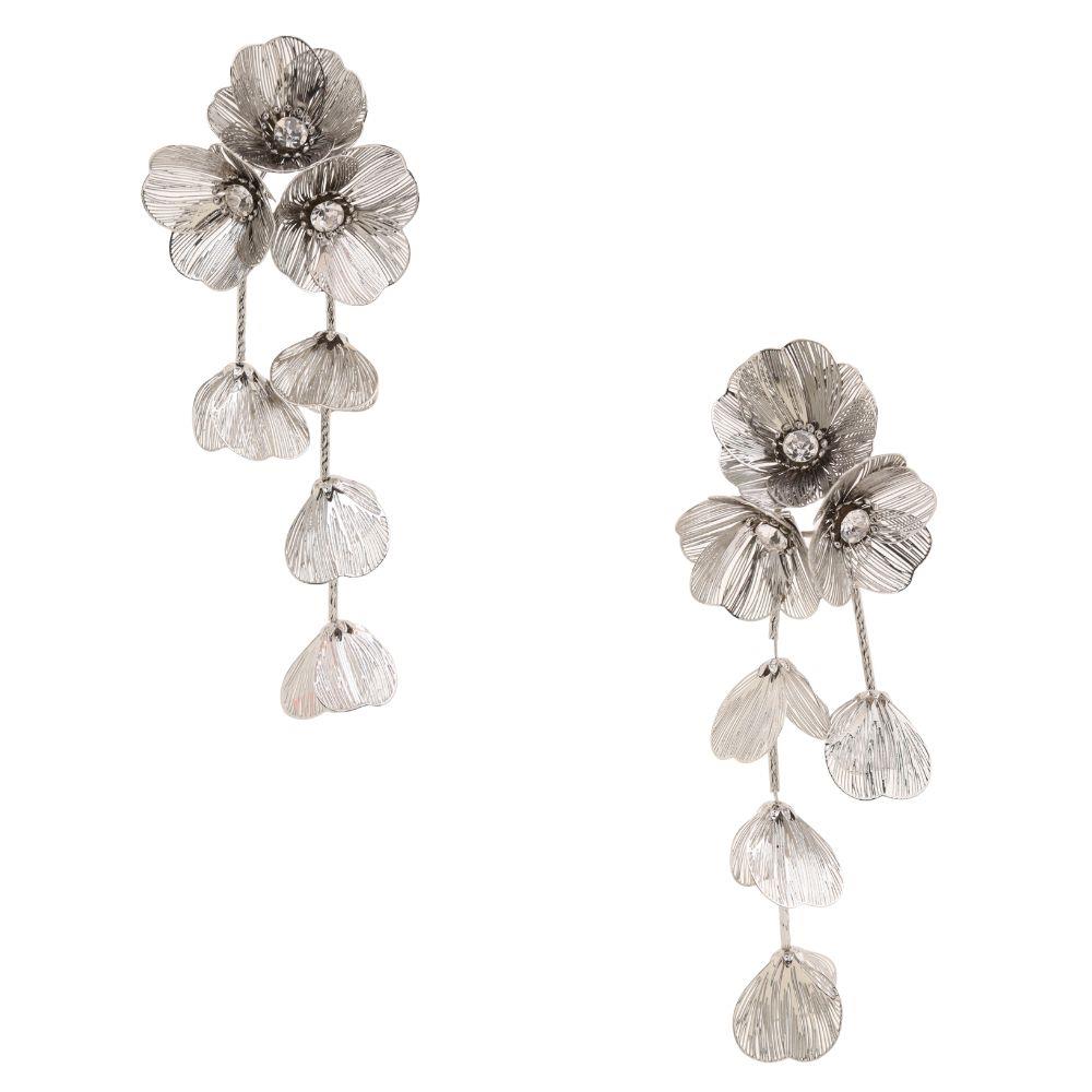 DOUBLE FLOWER OVAL METAL DANGLE EARRING