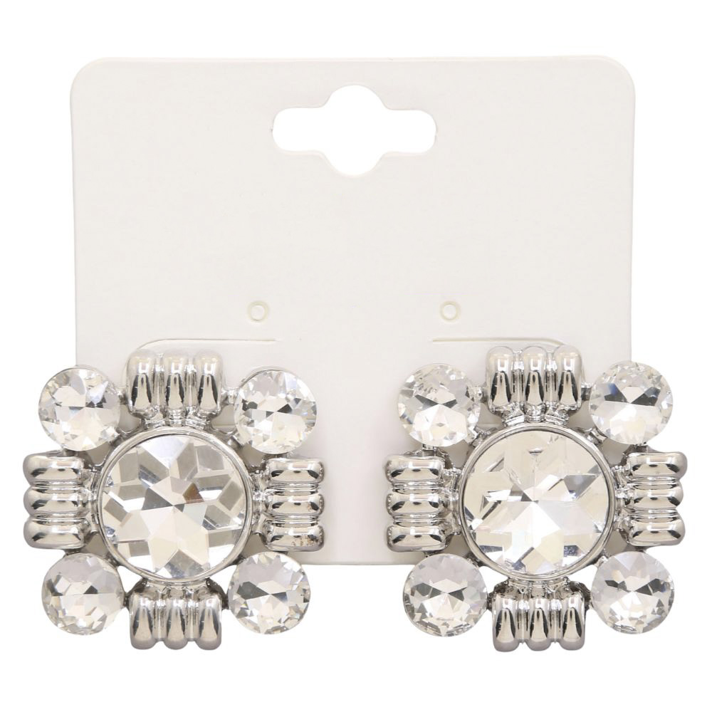 METAL CRYSTAL HEART EARDROP STUD EARRING