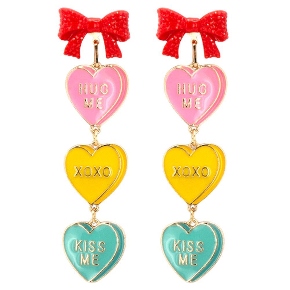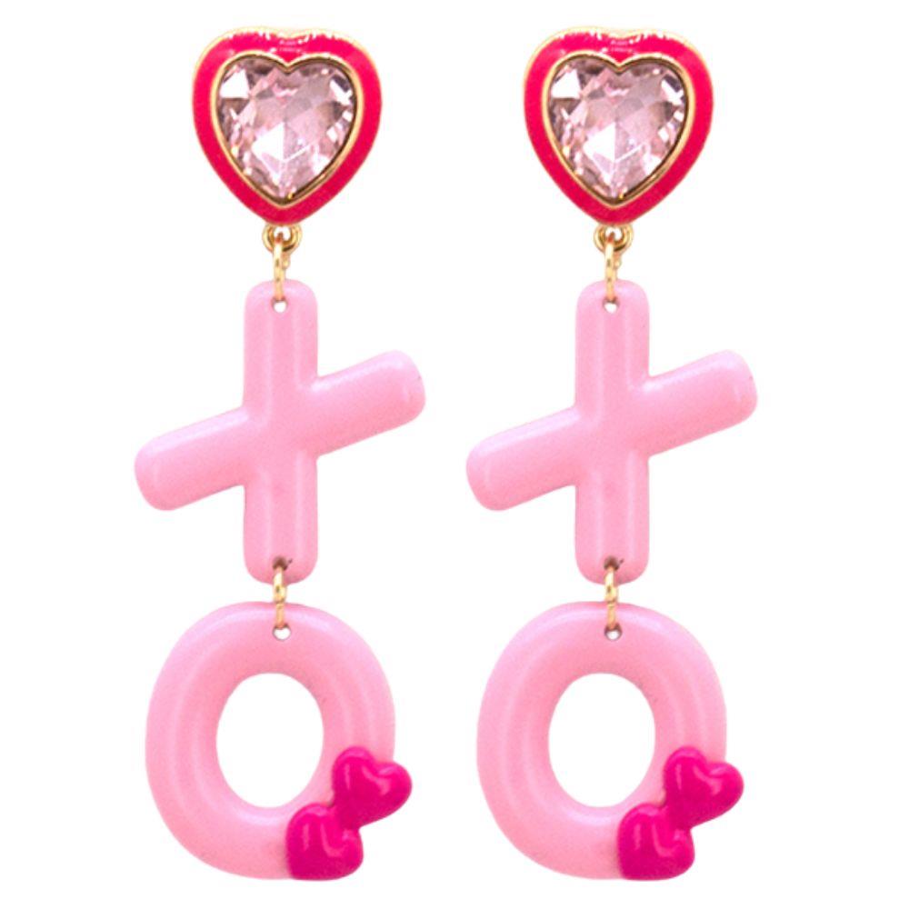 XOXO HEART SHAPE CRYSTAL DANGLE EARRING