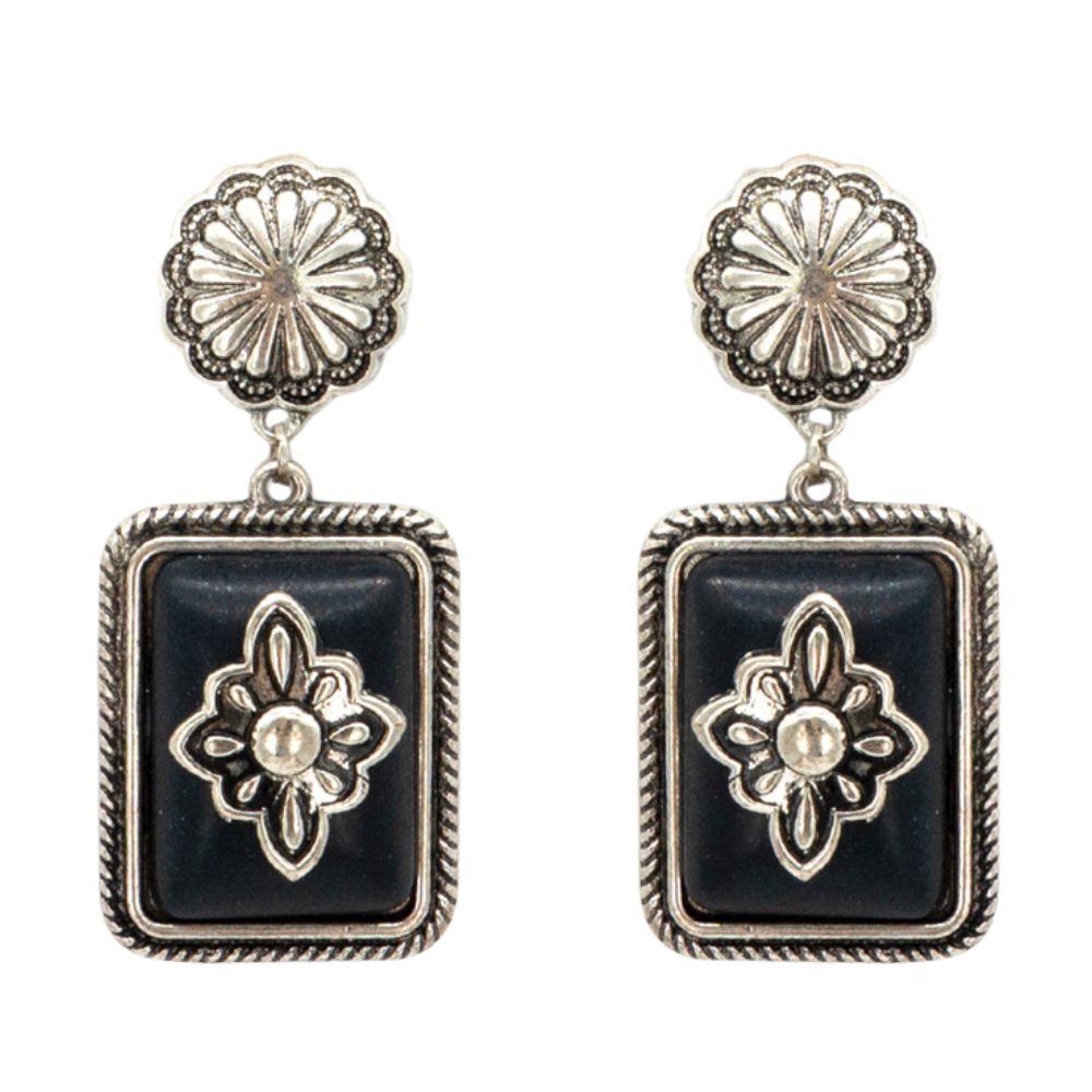RECTANGLE FLOWER SHAPE DANGLE EARRING