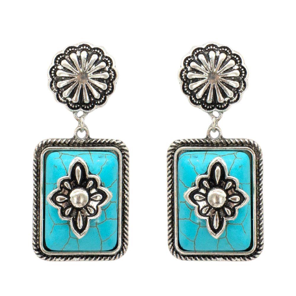 METAL WESTERN TURQUOISE OVAL DANGLE EARRING