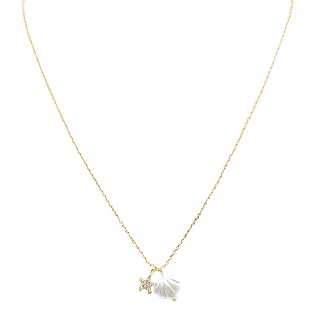 8K BRASS- SHELL PAVE STAR PDT NECKLACE