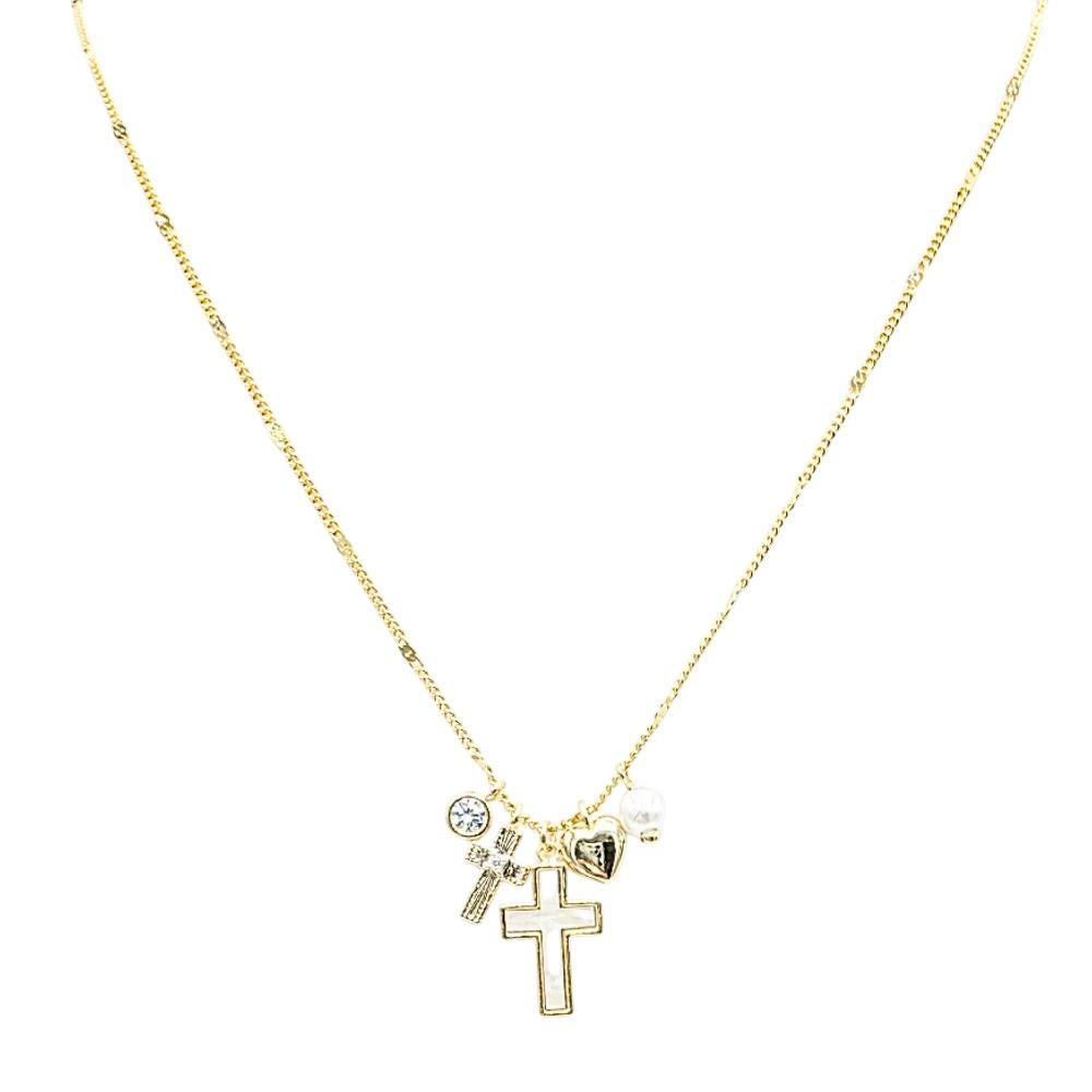 18K BRASS- MULTI CROSS CHARM PDT NECKLACE