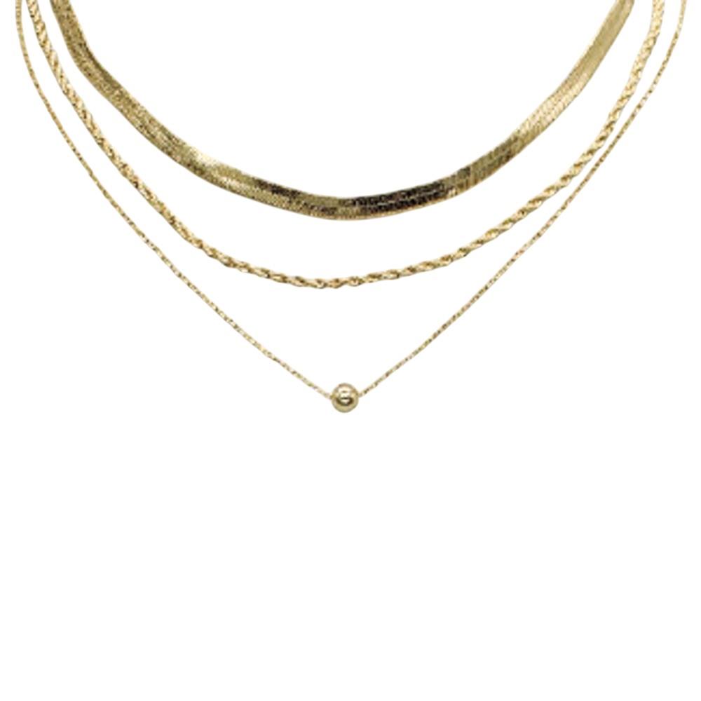 BINA308 GD BRASS- 3 LYD BALL PDT SNAKE CHAIN NECKLACE
