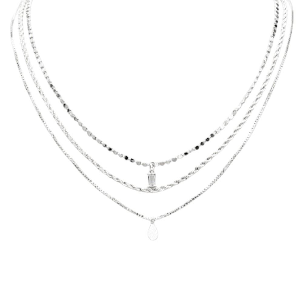 BRASS- 3 LYD TEARDROP & RECTANGLE NECKLACE