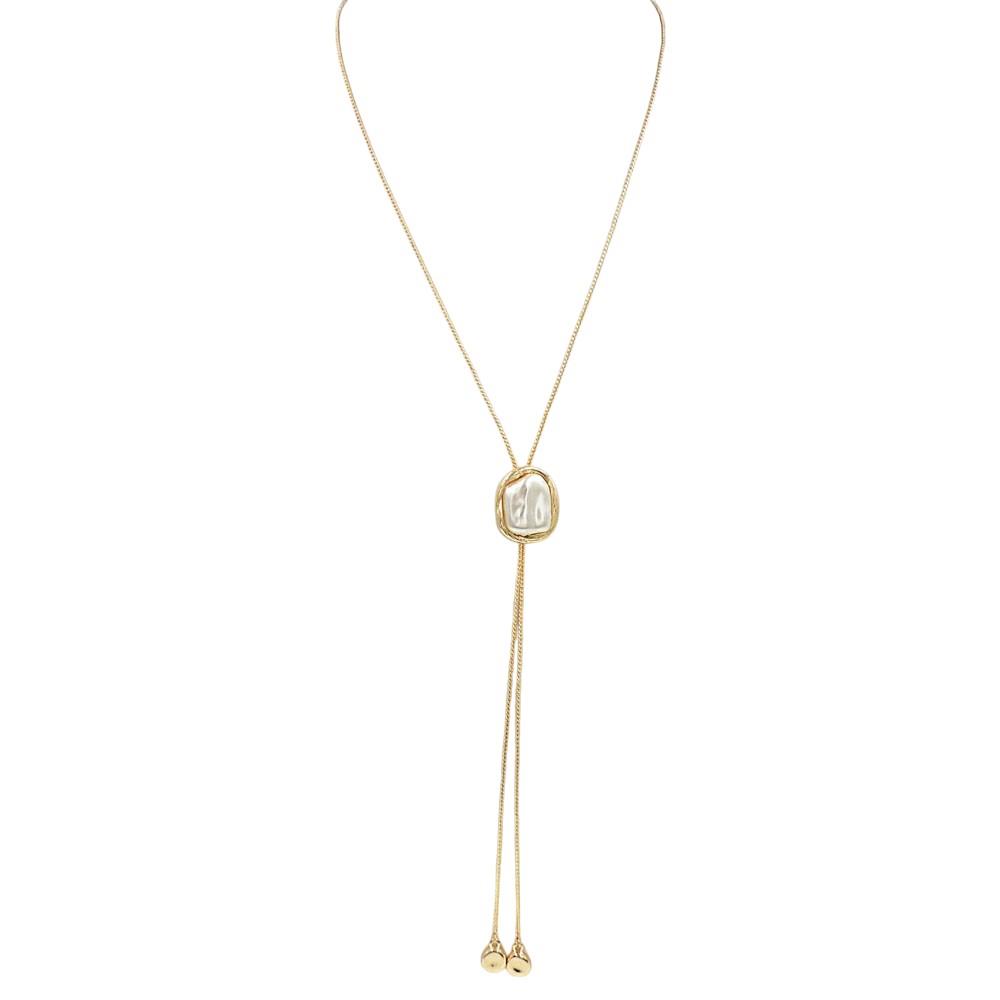 BRASS- 2 LYD PEARL LARIAT NECKLACE
