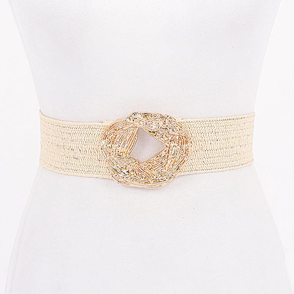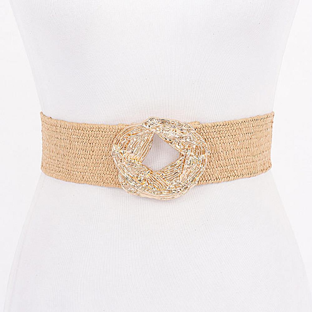 METAL BUCKLE ELASTIC FAUX STRAW BELT
