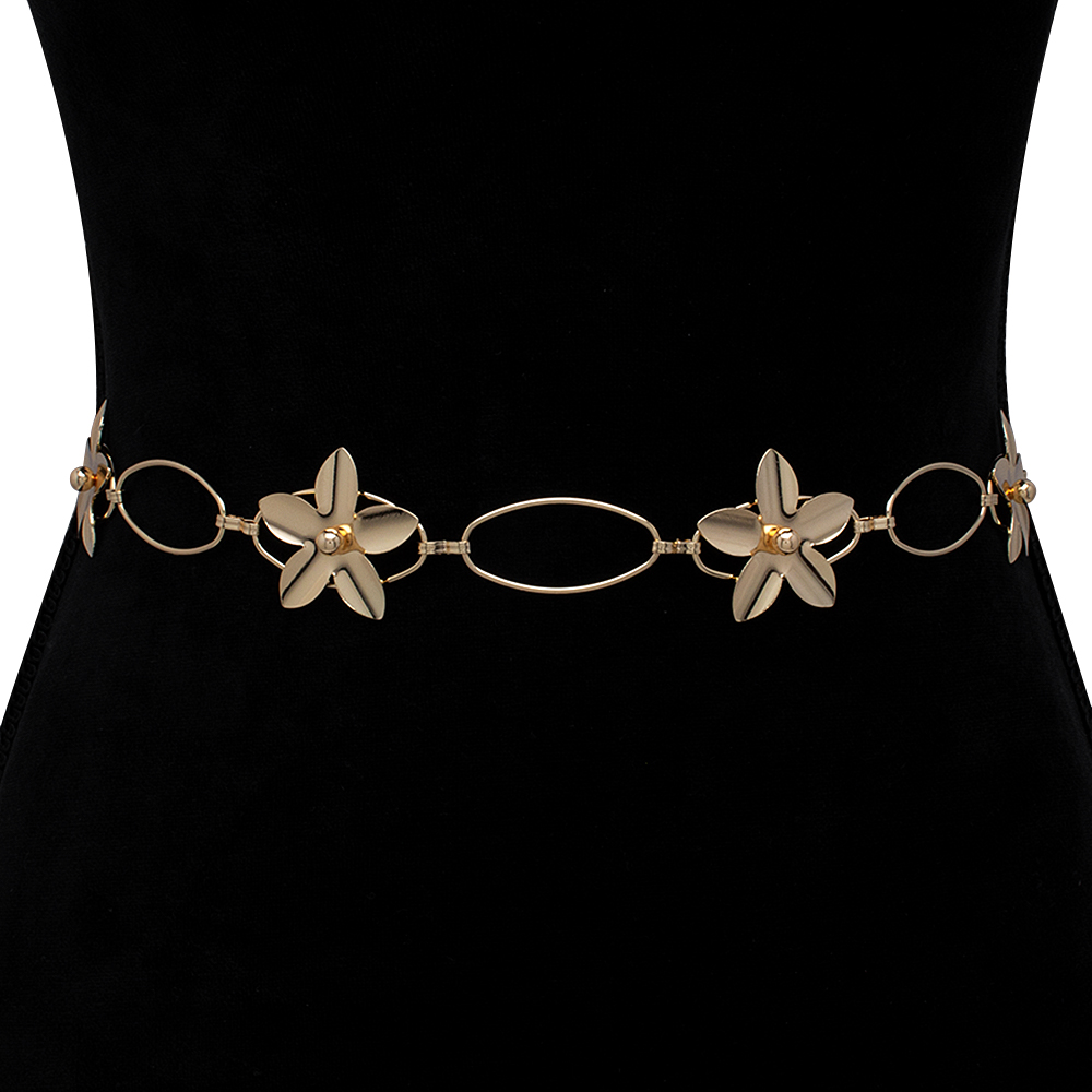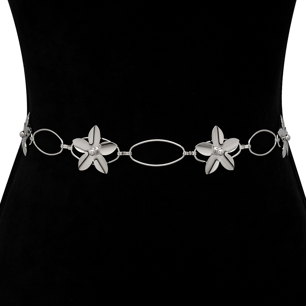 FLOWER OVAL LINK METAL HOOK BELT