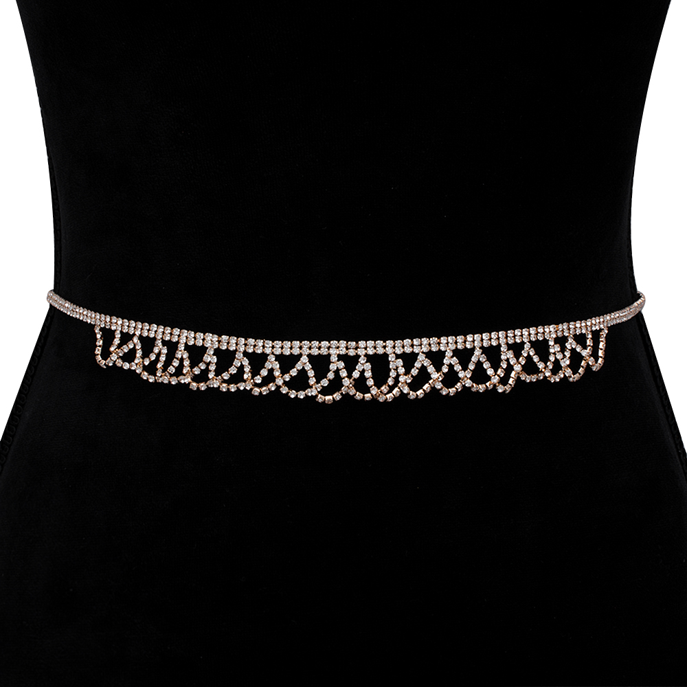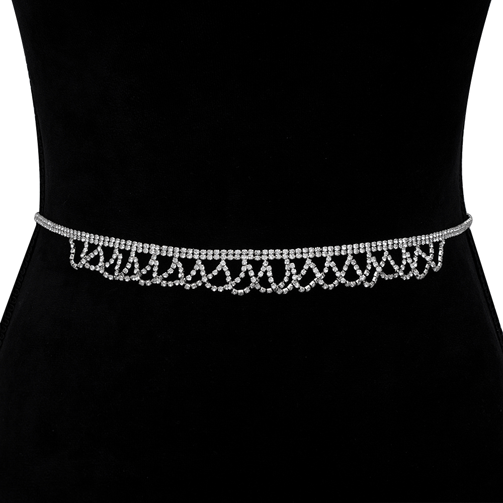 RHINESTONE CRYSTAL WAVE PATTERN HOOK BELT