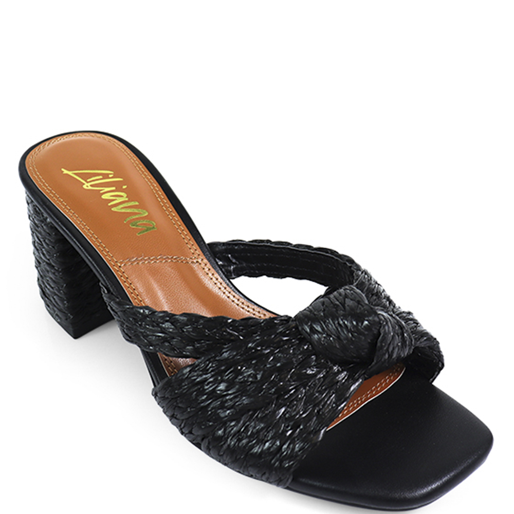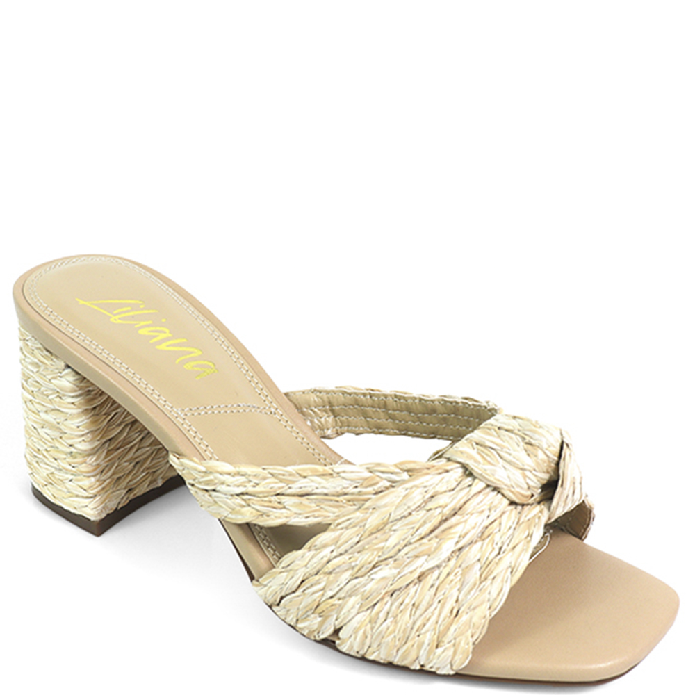 RAFFIA KNOT SLIDE CHUNKY HEEL 12 PAIRS