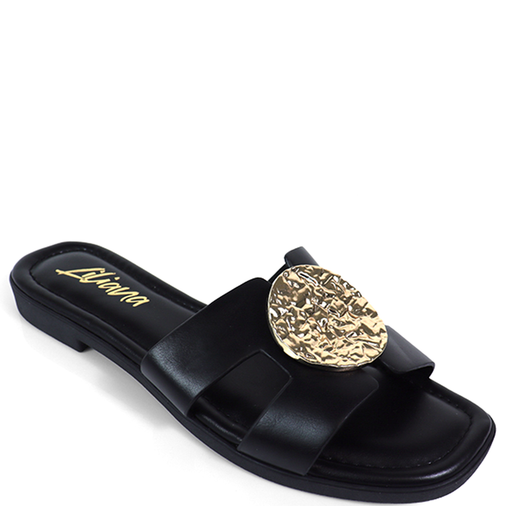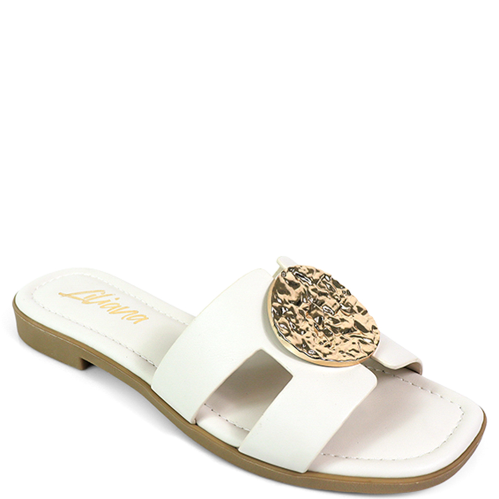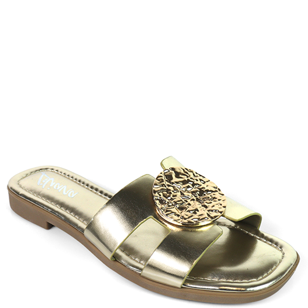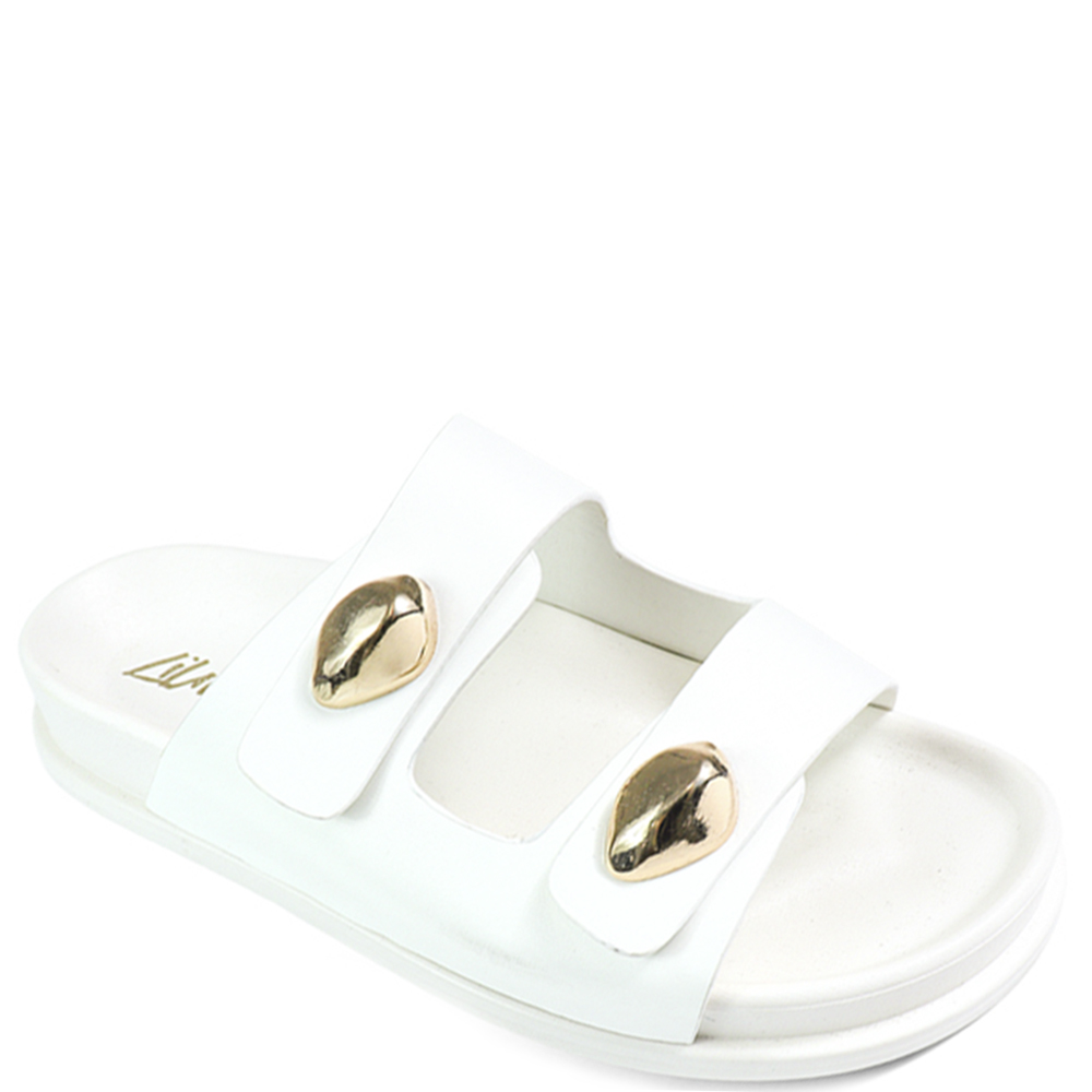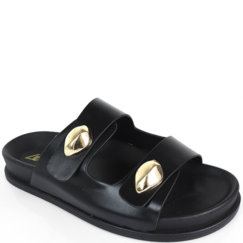 METAL DETAIL DOUBLE STRAP SLIDE SANDALS 12 PAIRS