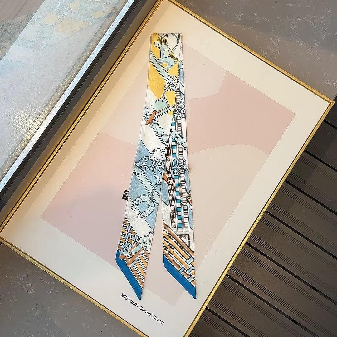 CARRIAGE CHAIN PRINT SILKY SKINNY SCARF