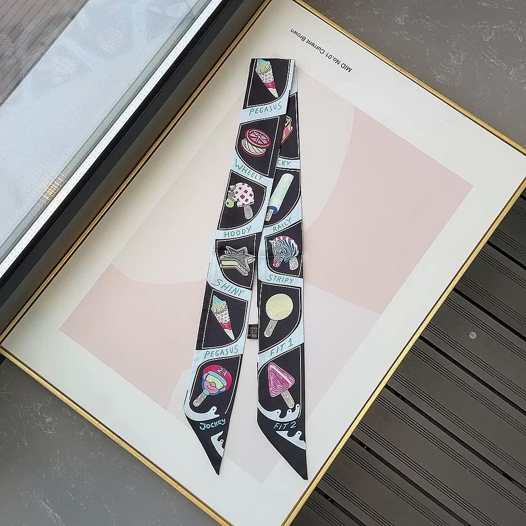 HORSE STRIPE PRINT SILKY SKINNY SCARF
