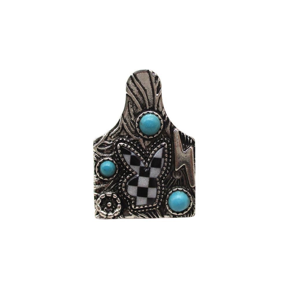WESTERN COW EAR TAG BUNNY CHECKER PRINT RING