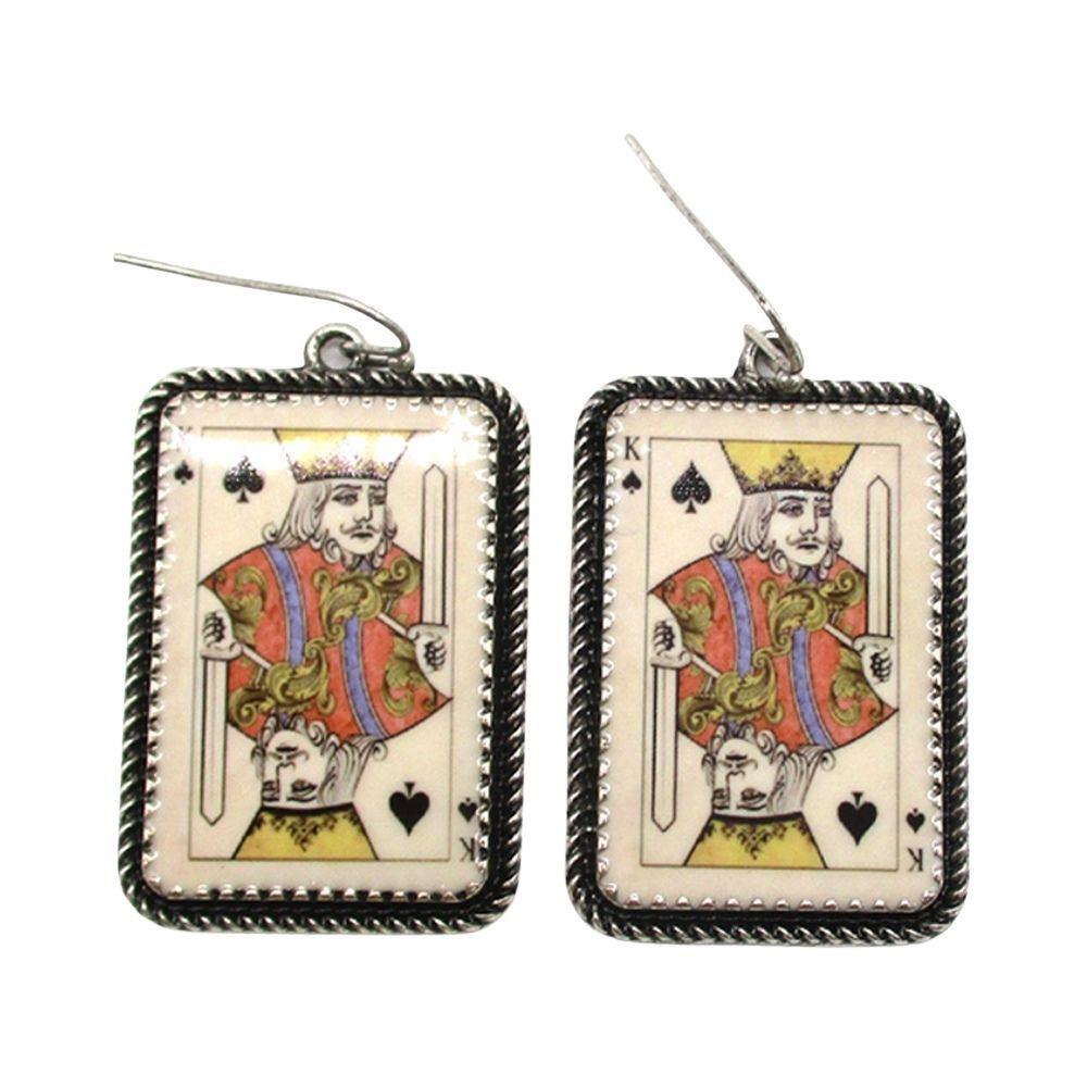 WESTERN KING CARD RECTANGLE DANGLE EARRING