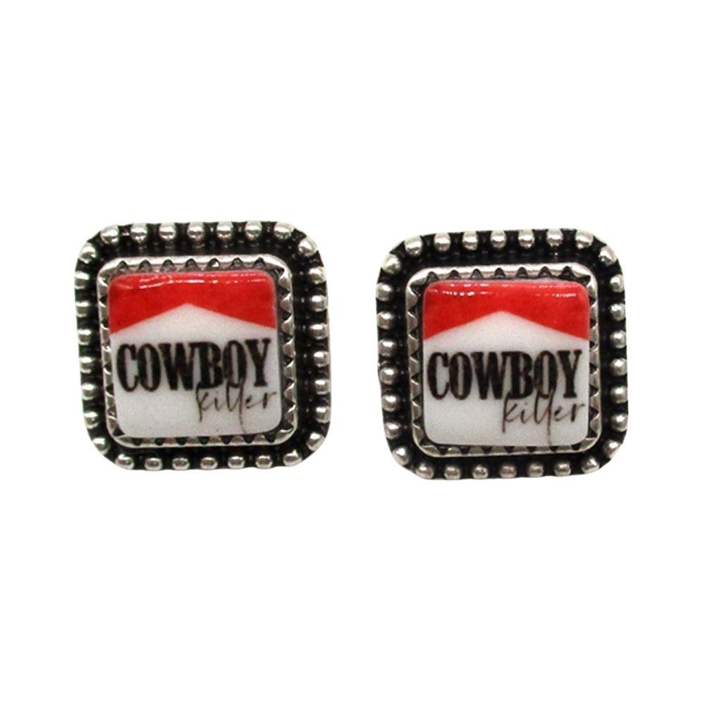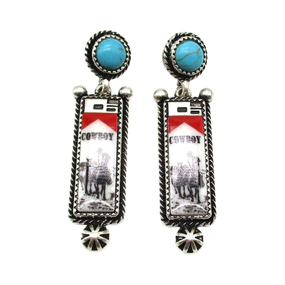 WESTERN RECTANGLE SHAPE COWBOY EARRING