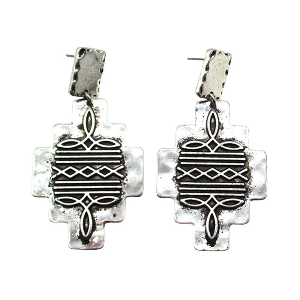 WESTERN RECTANGLE SHAPE COWBOY HOOK EARRING