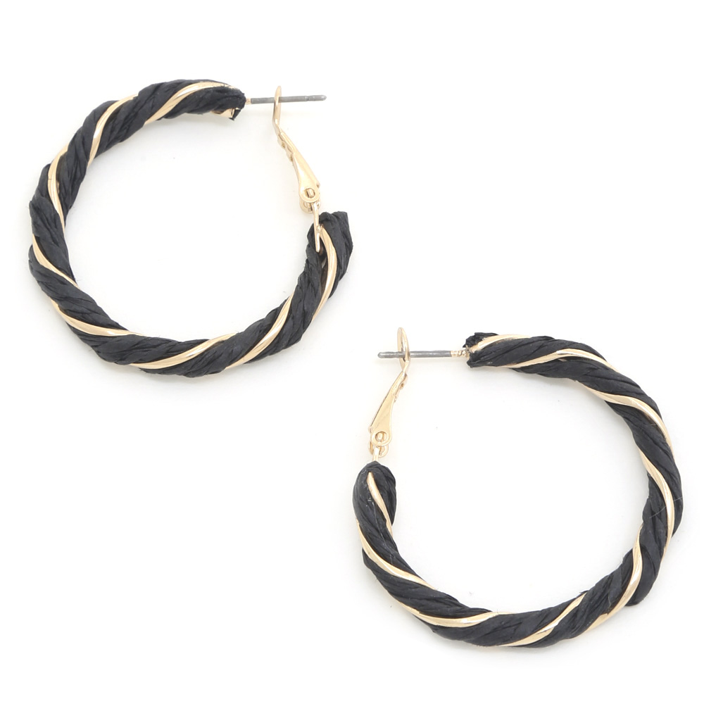 TWISTED RAFFIA BRAIDED OPEN HOOP EARRING