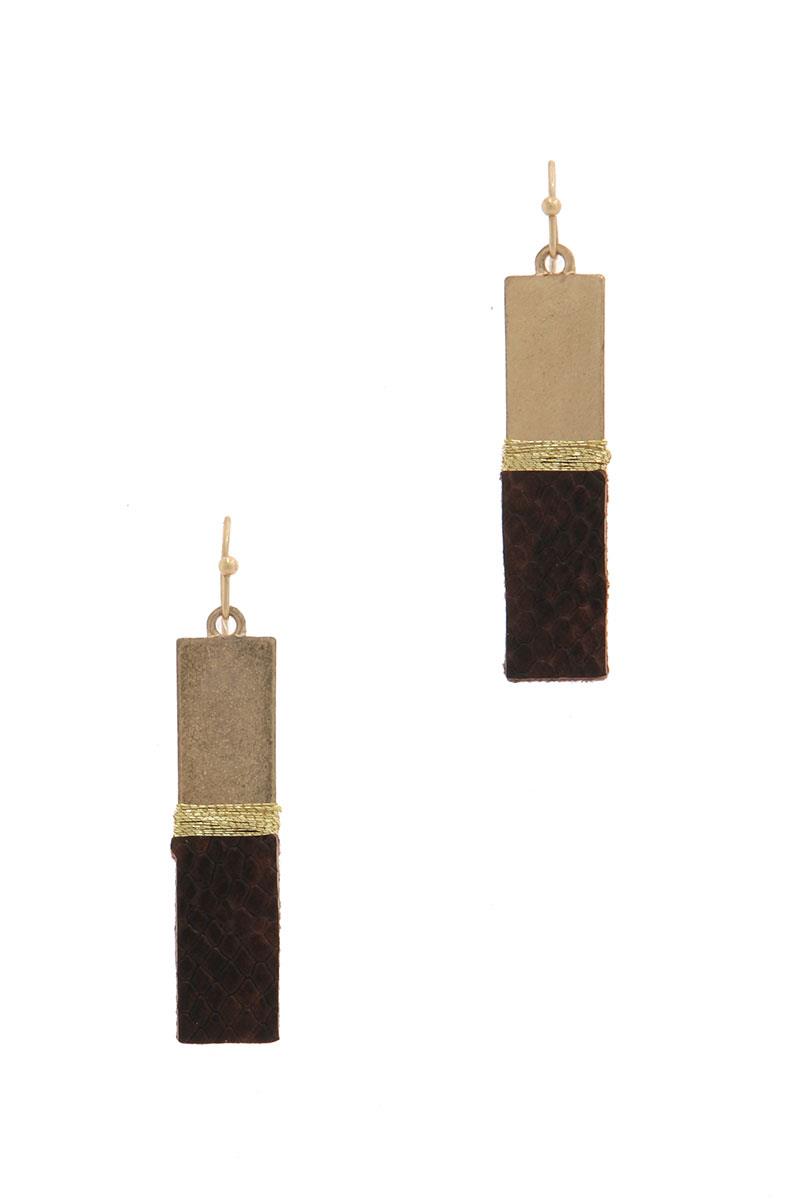 GENUINE LEATHER SNAKE PRINT RECTANGLE EARRING