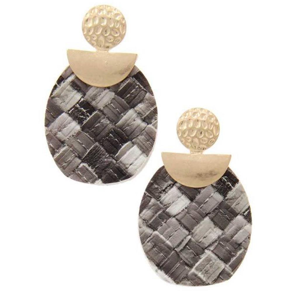 METAL TWIST LINED FAUX LEATHER FILIGREE DROP EARRING