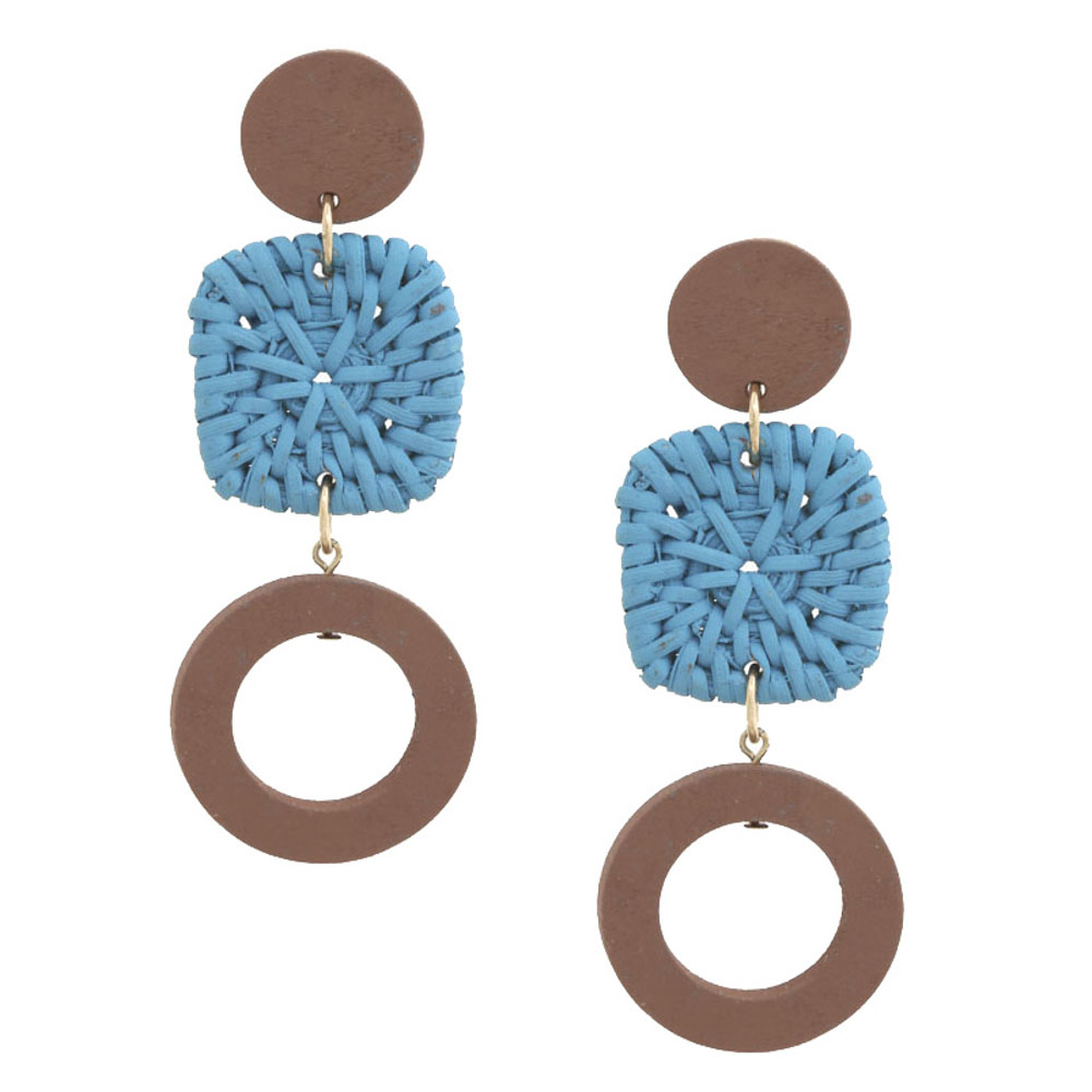 RATTAN GEOMETRIC FISH HOOK EARRING