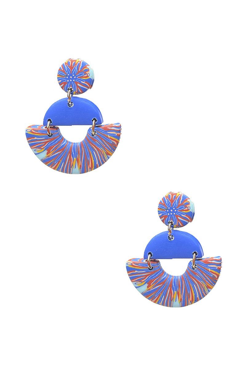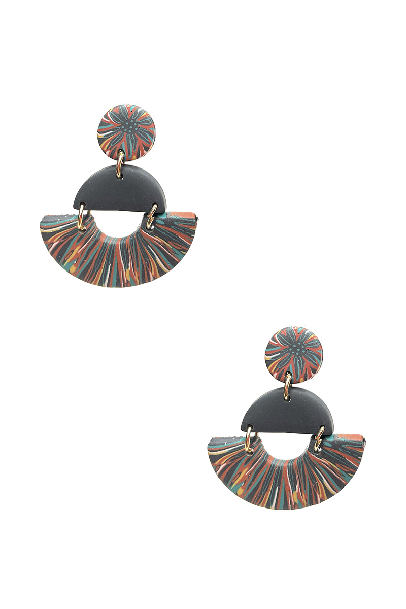 FASHION CLAY ROUND HALF MOON DROP EARRING