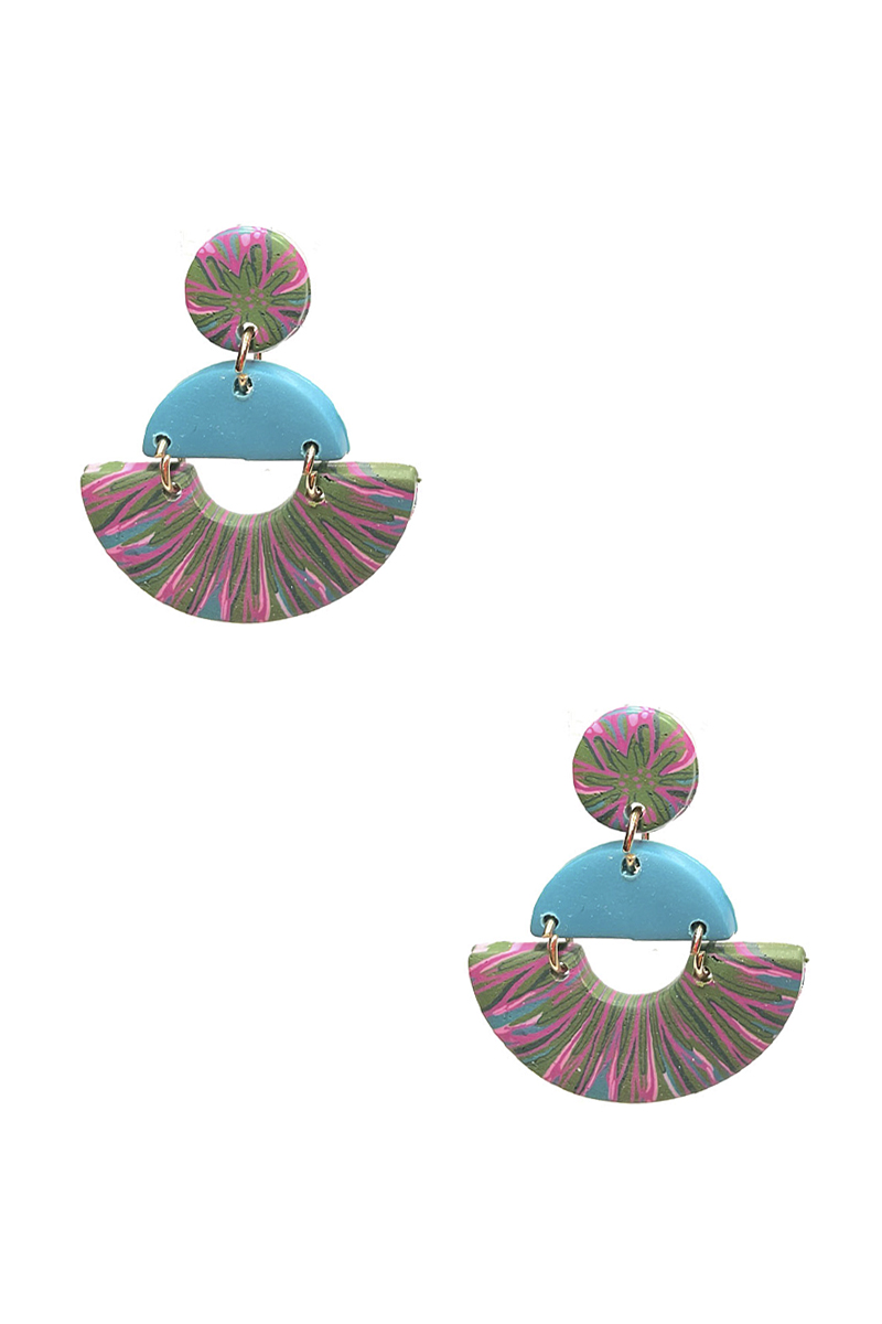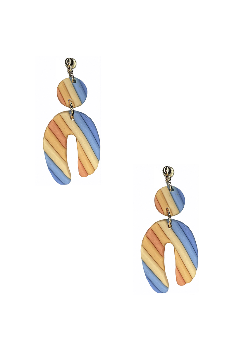 STYLISH CLAY MULTI TONE CURVE DROP EARRING