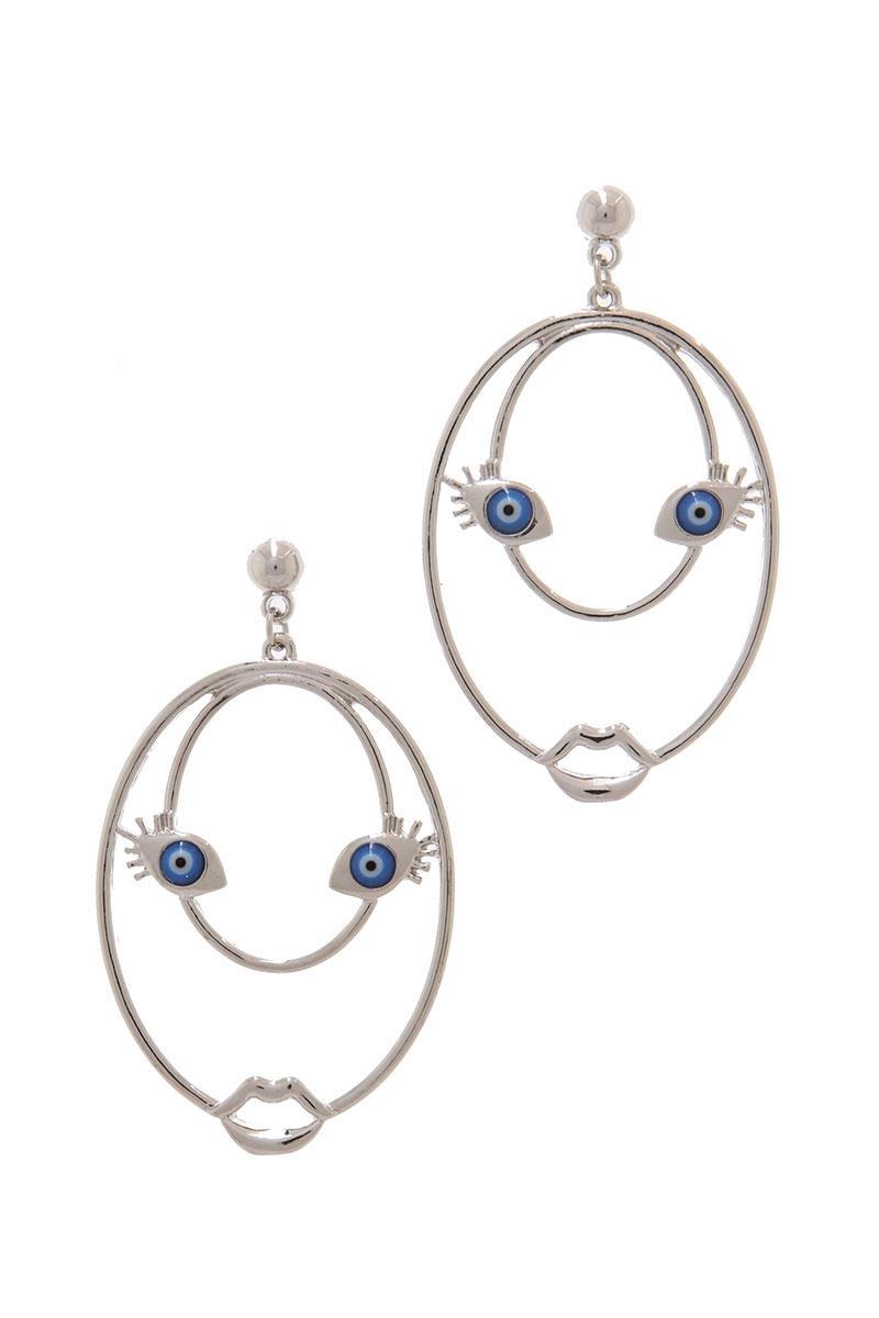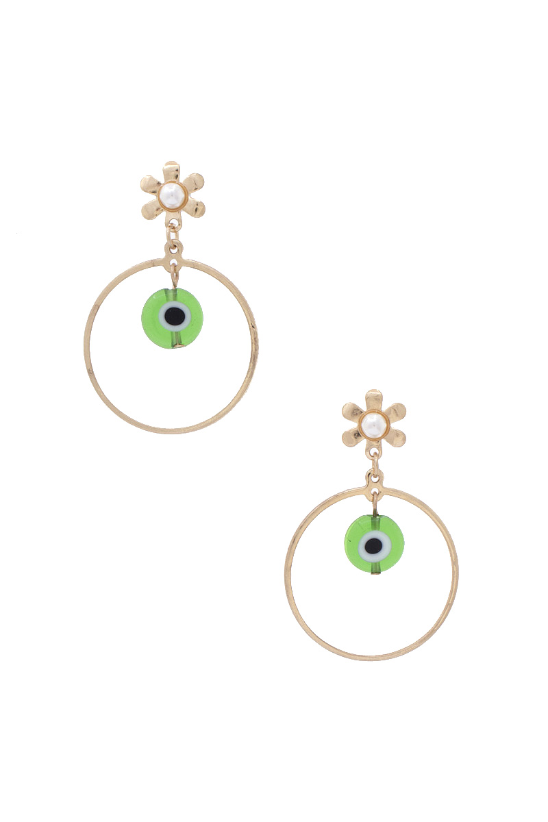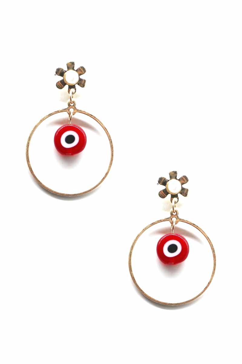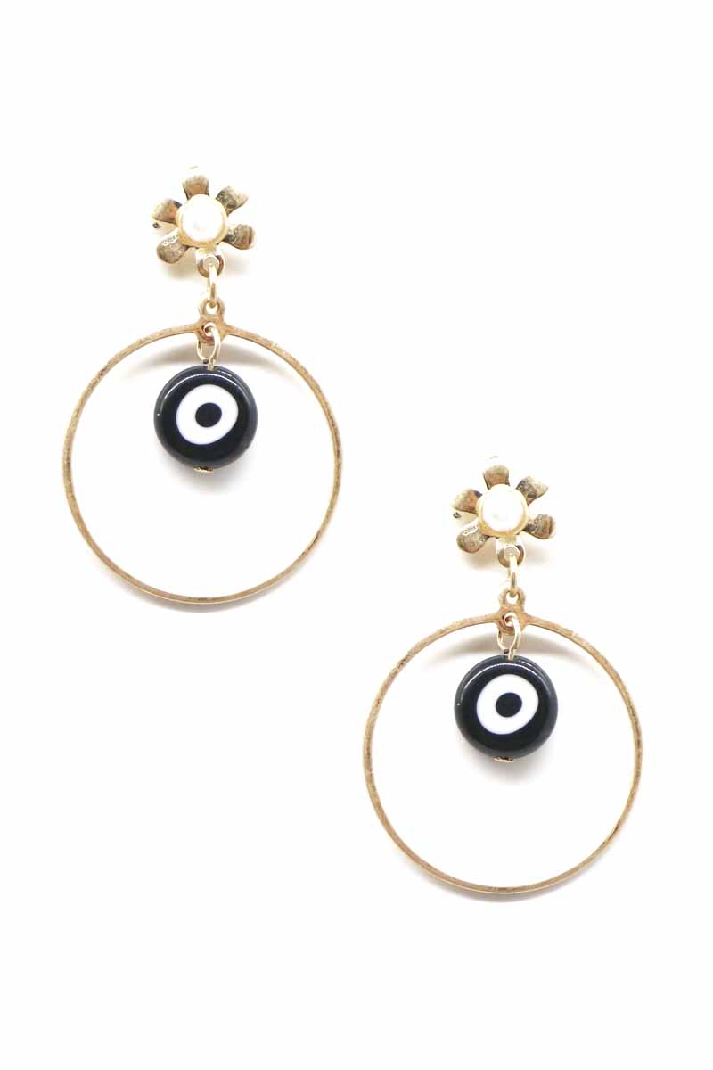 METAL ROUND EVIL EYE DANGLE EARRING