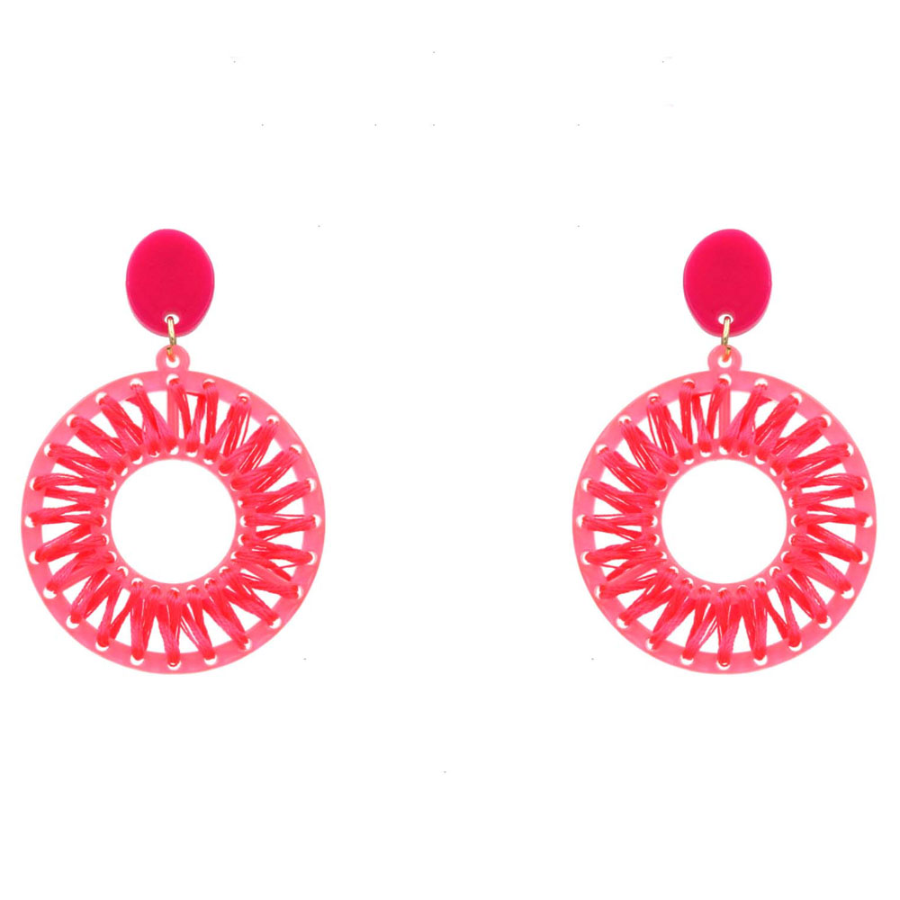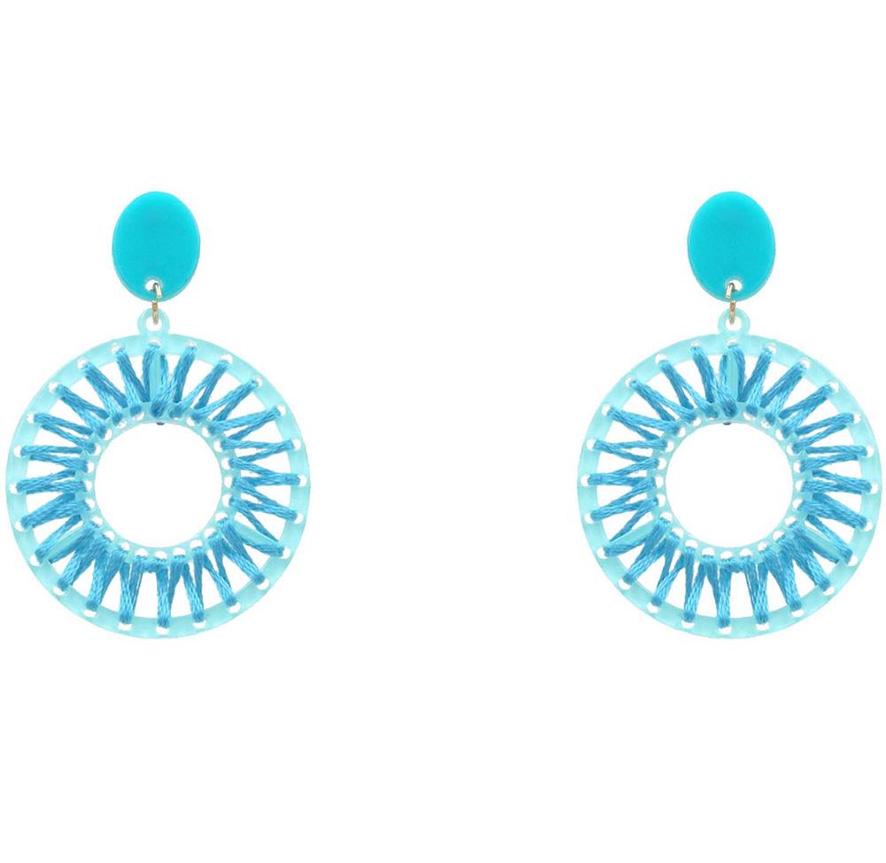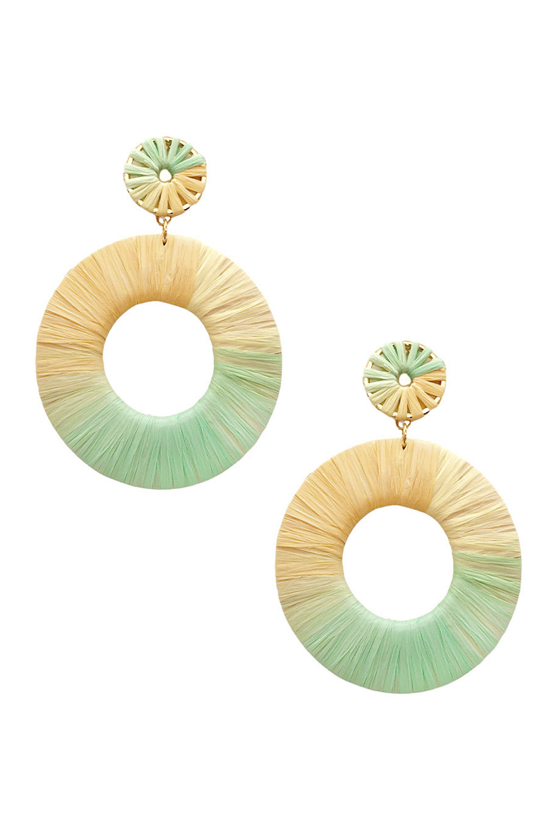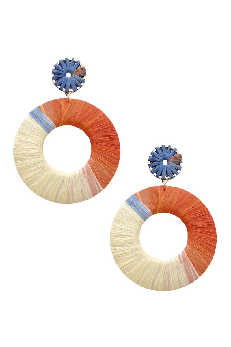 ROUND RAFFIA WRAPPED DANGLE EARRING