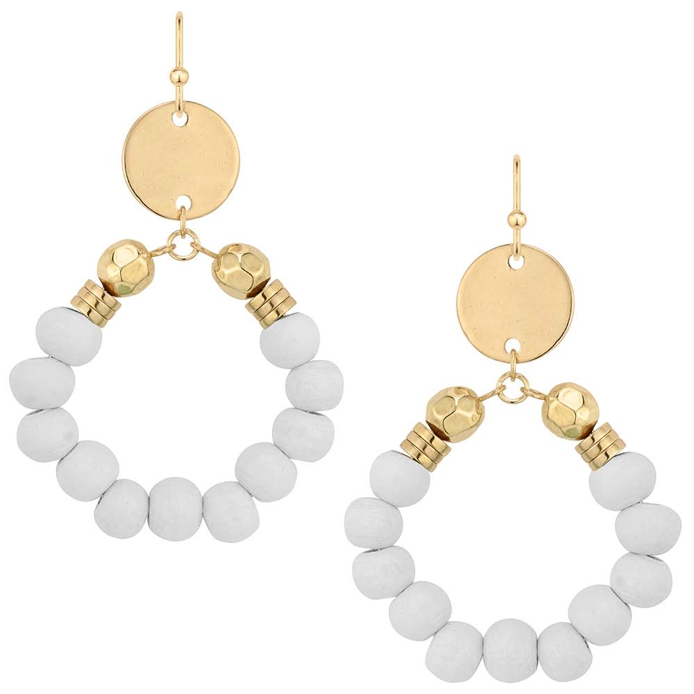 RAFFIA EDGE BEADED ROUND DANGLE EARRING