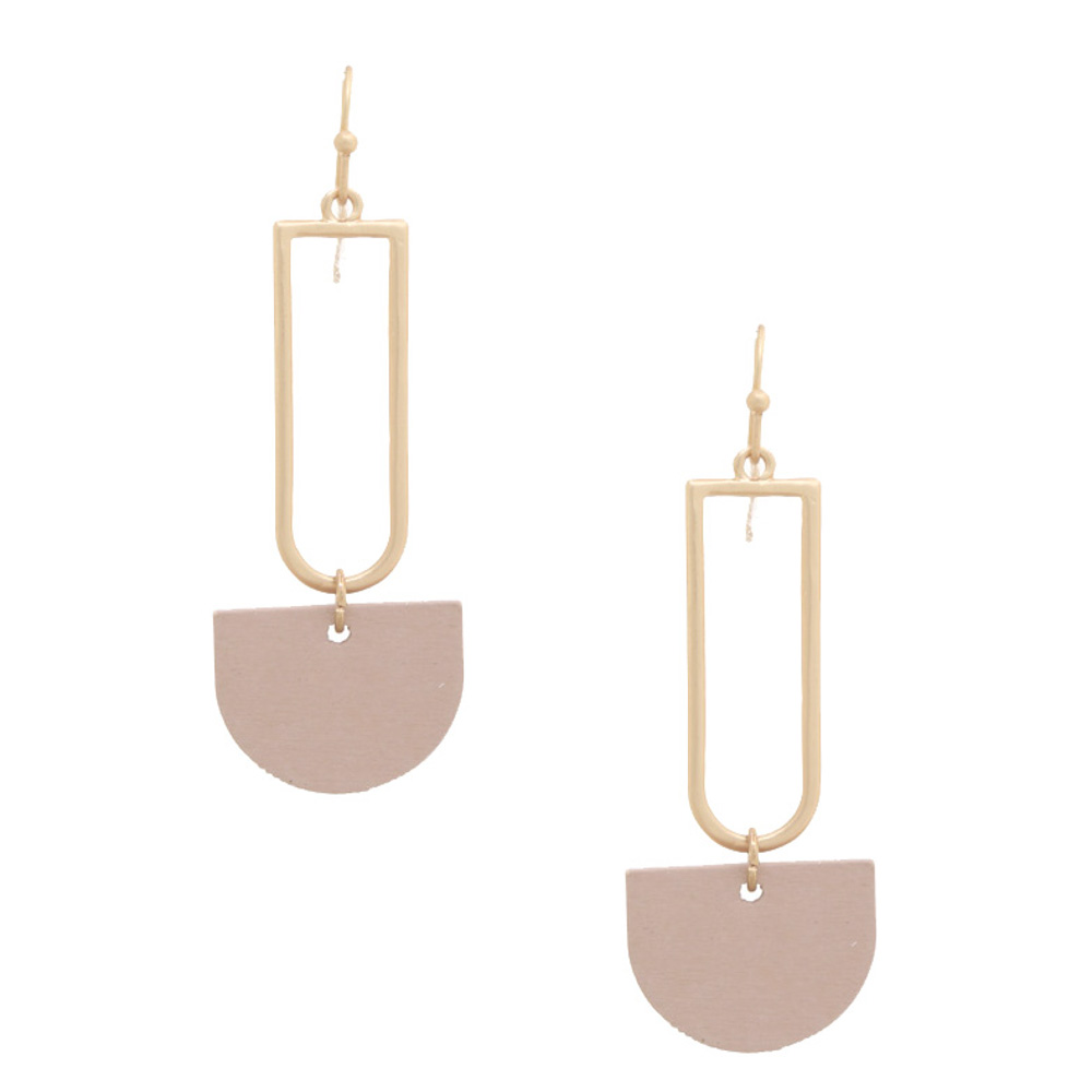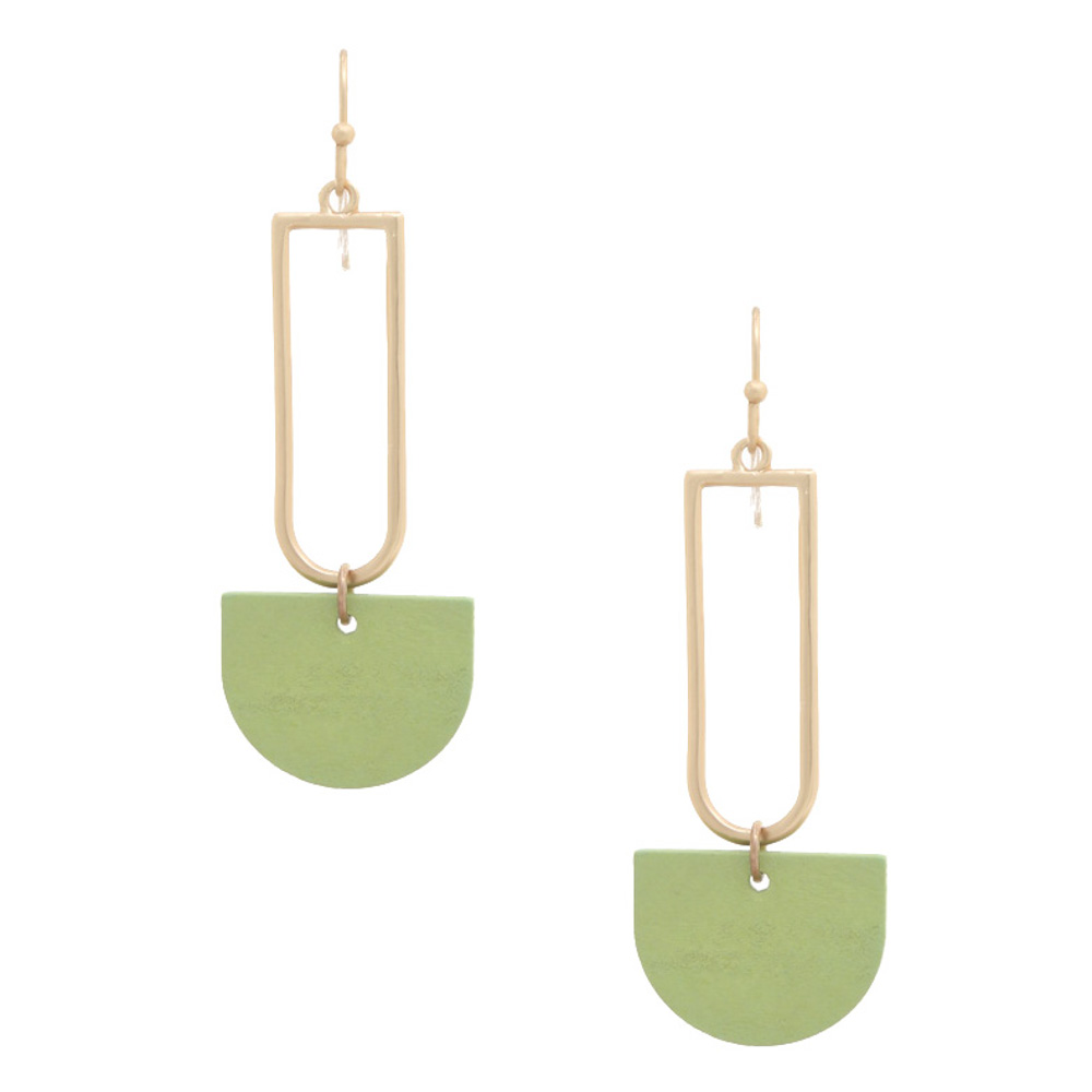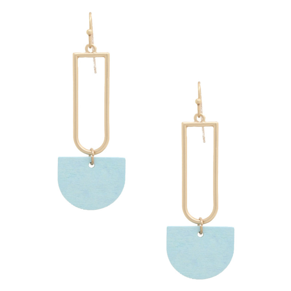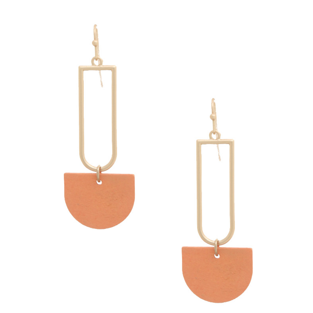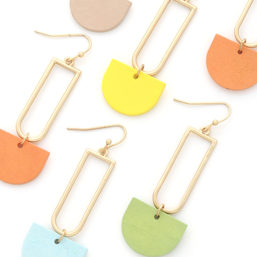HALF CIRCLE COLOR WOOD DANGLE EARRING