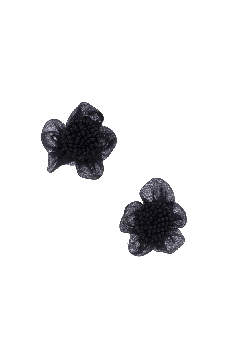 SEED BEAD CENTER TULLE FLOWER EARRING