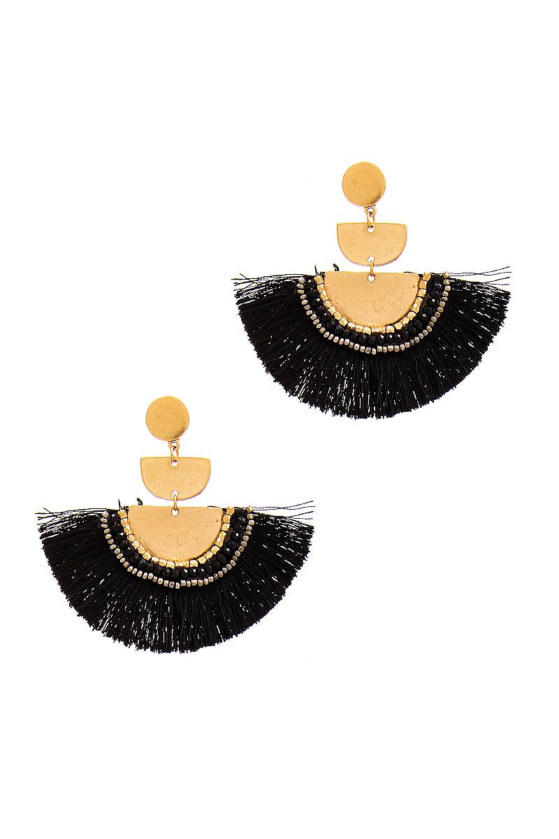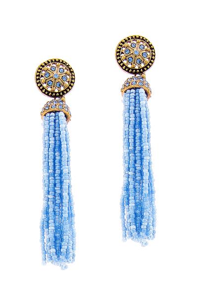 OVAL BEADED BALL TASSEL DANGLE EARRING