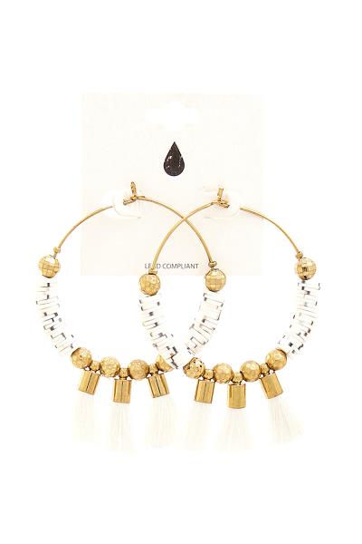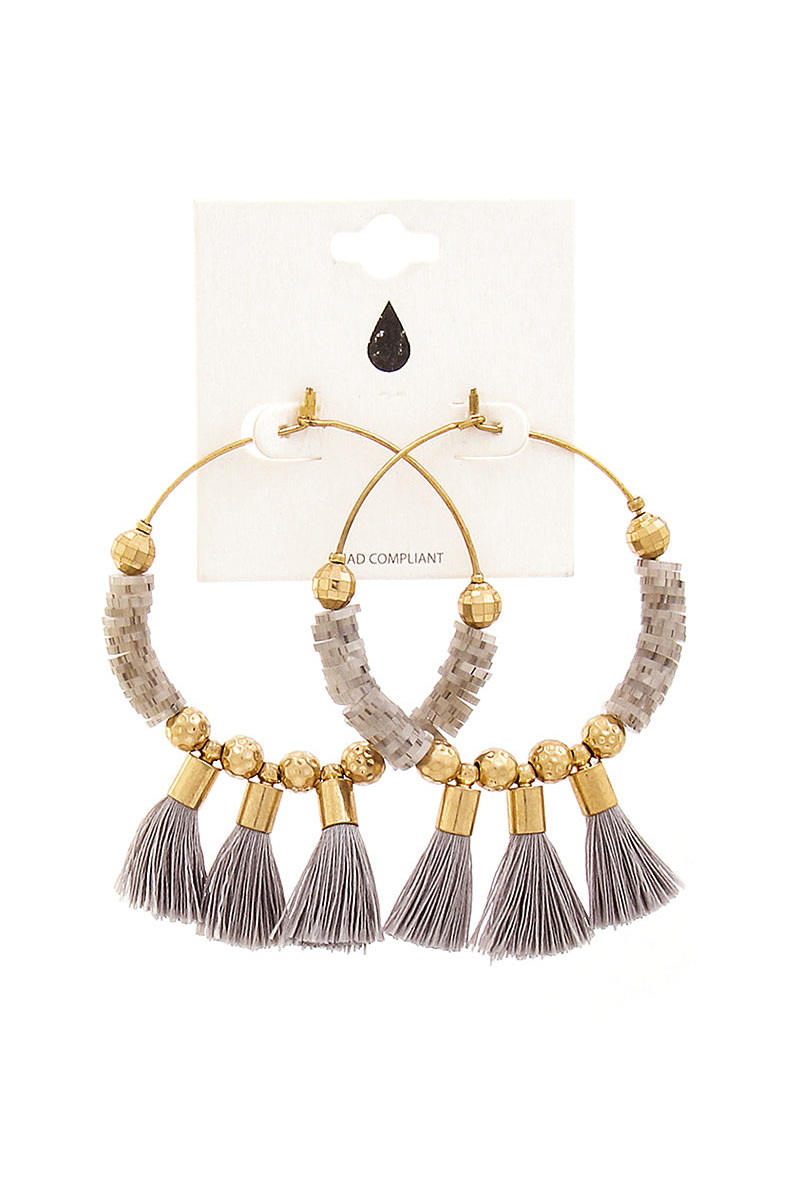METAL CIRCLE THREAD WRAP BEADED EARRING