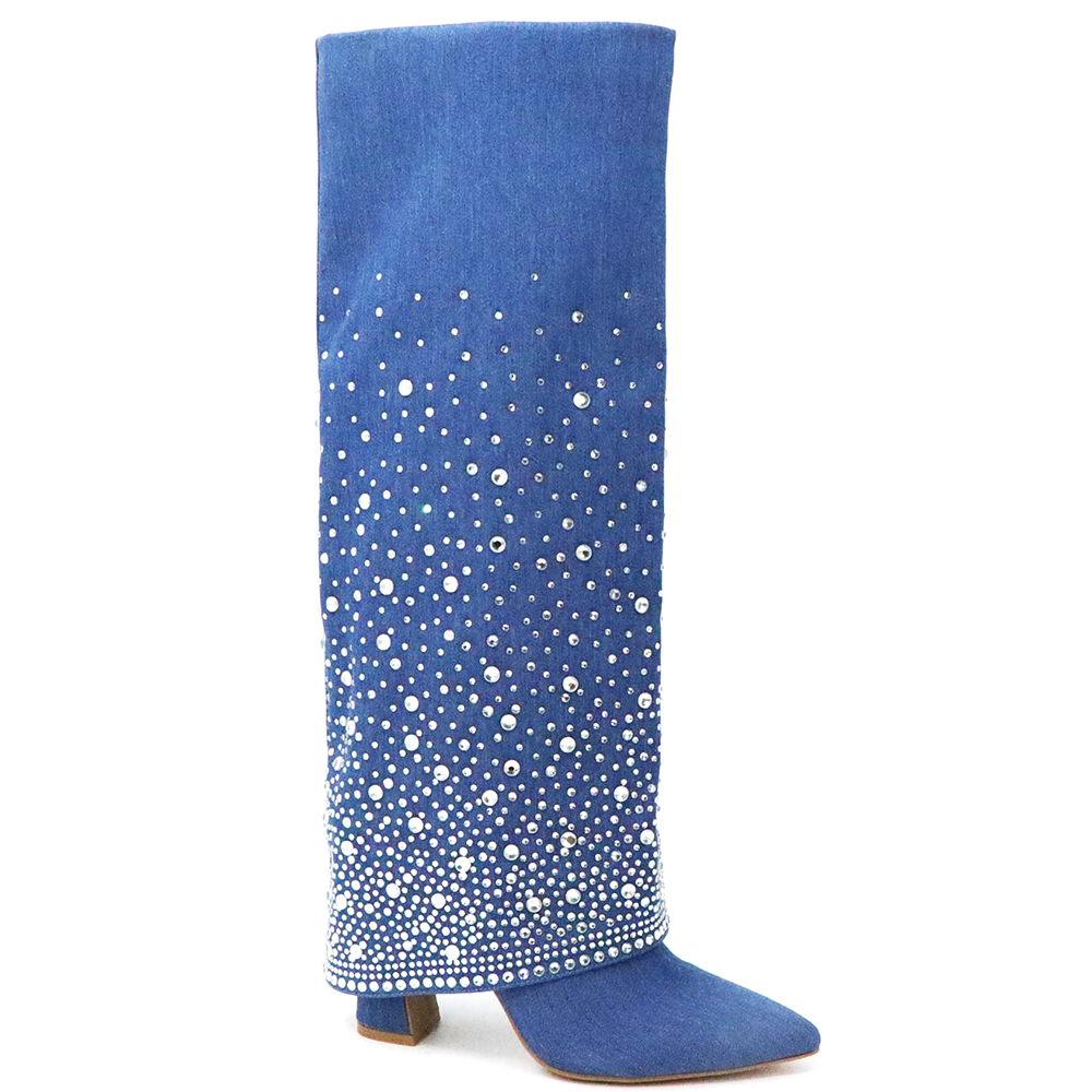 DENIM KITTY SCRUNGE HEEL BOOT 12 PAIRS
