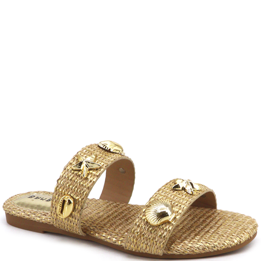 RAFFIA SANDAL W GOLD HORSEBIT 18 PAIRS