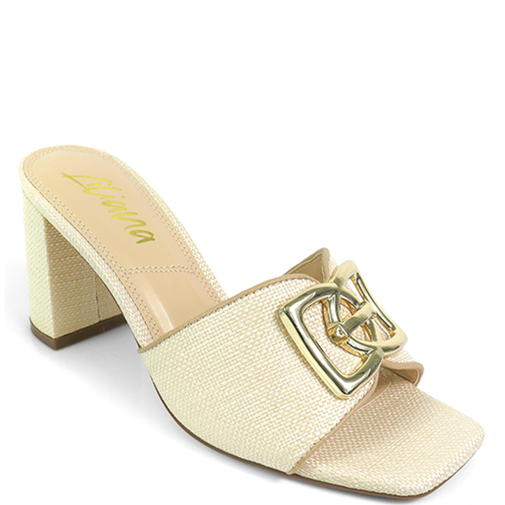 RAFFIA KNOT SLIDE CHUNKY HEEL 12 PAIRS