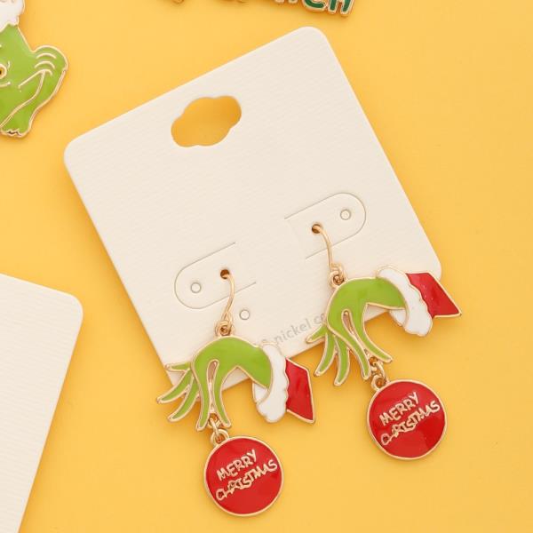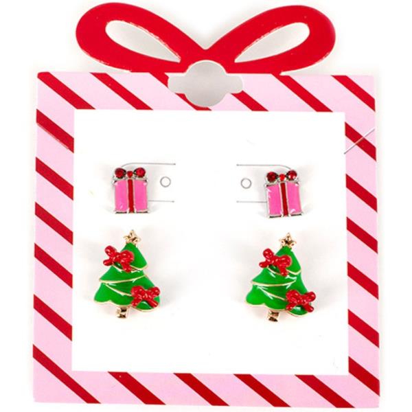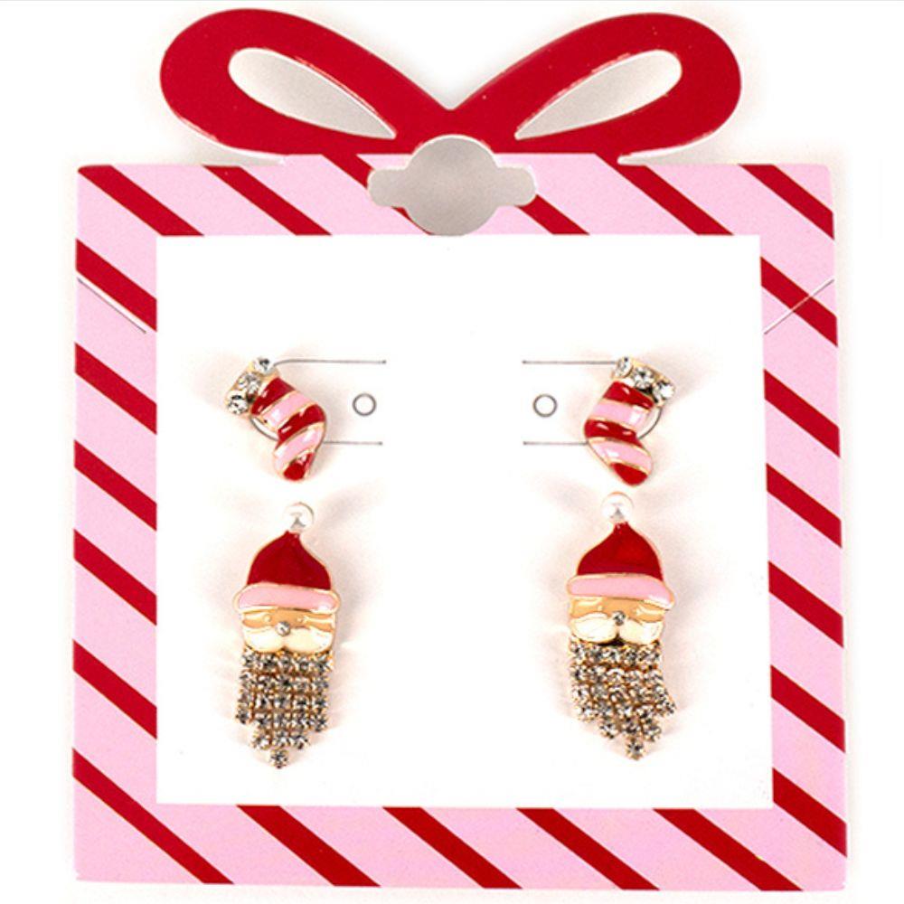 CHRISTMAS NAUGHTY AND NICE RHINESTONE SEED BEAD EARRINGS