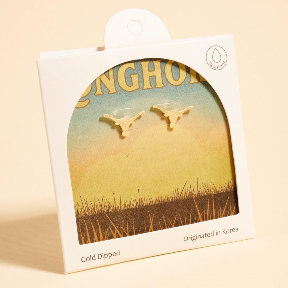 BULL`S HEAD SHAPED GOLD-DIPPED 925 SILVER POST EARRING WATER RESISTANT
