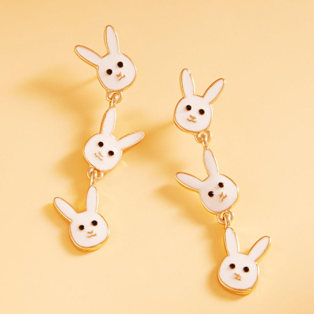 EASTER BUNNY SHAPED PEARLIZED 3 DROP EARRINGS