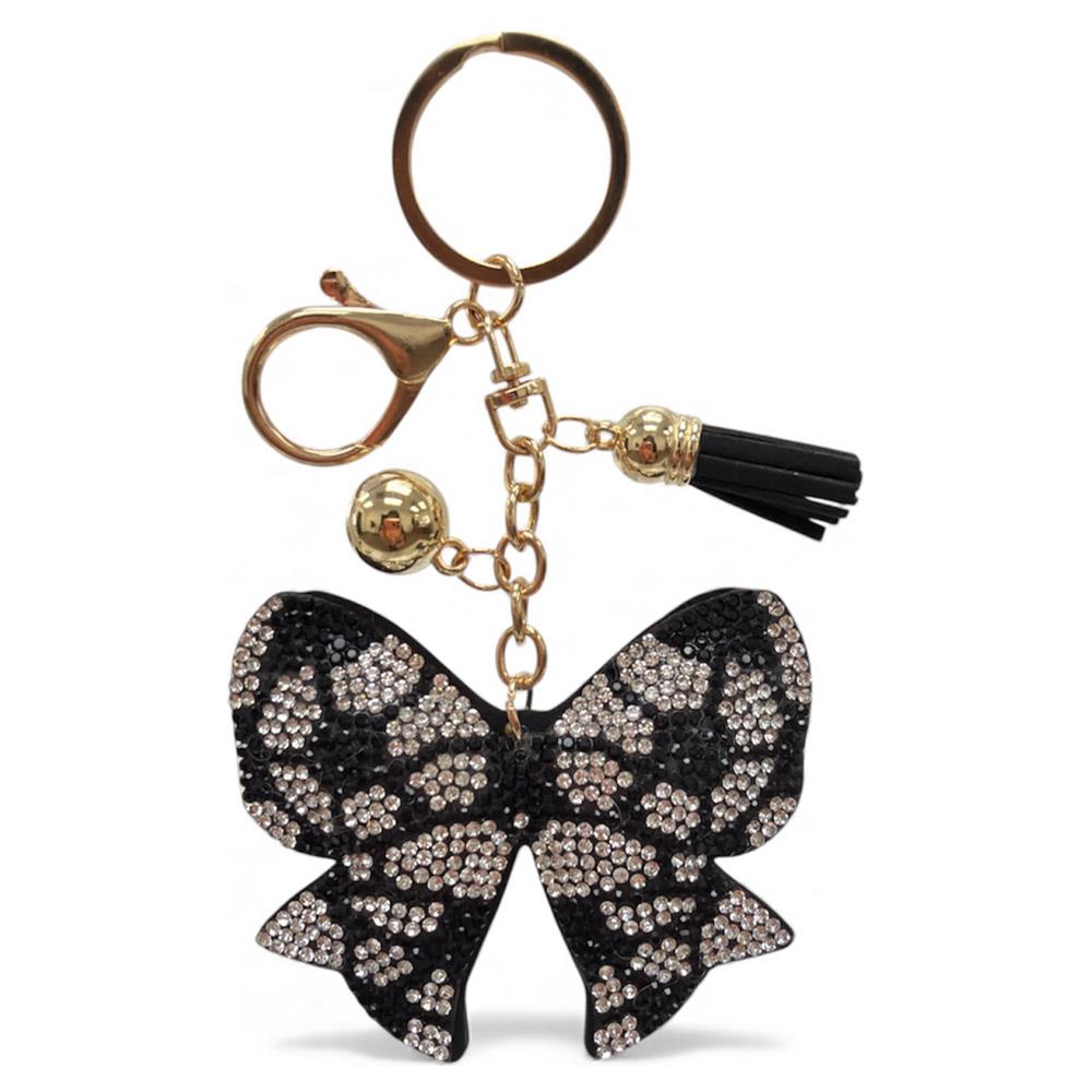 RHINESTONE SOCCER RIBBON BOW KEYCHAIN WITH TASSEL