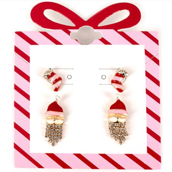 CHRISTMAS SEED BEAD THREAD WESTERN STYLE SANTA EARRING