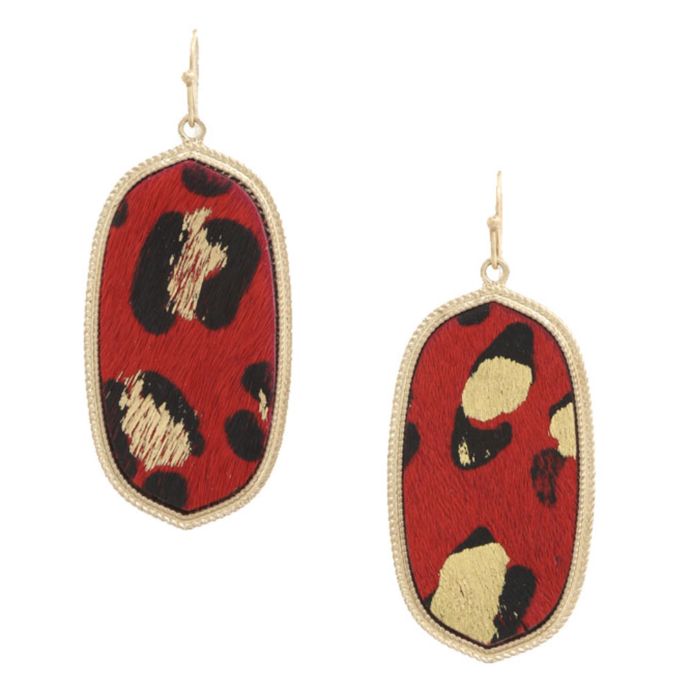 HAIRCALF LEOPARD OVAL DANGLE EARRING