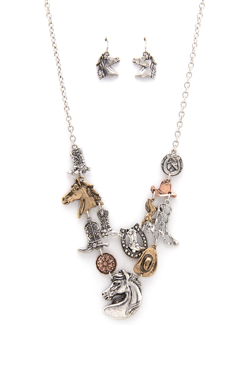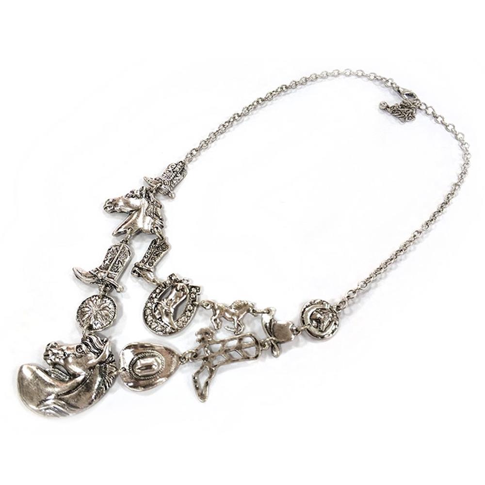 WESTERN SEMI STONE BUCKLE METAL NECKLACE
