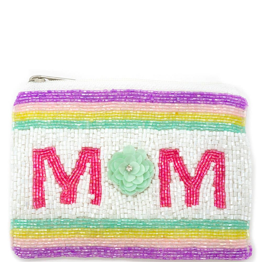 MOM OF GIRLS SEED BEAD COIN PURSE