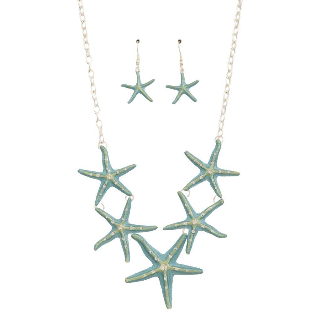 STARFISH W COLOR BEAD NECKLACE EARRING SET