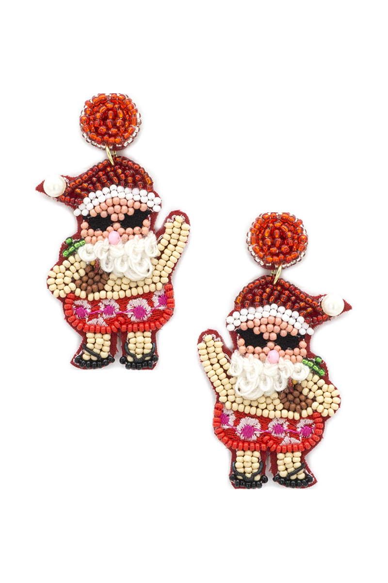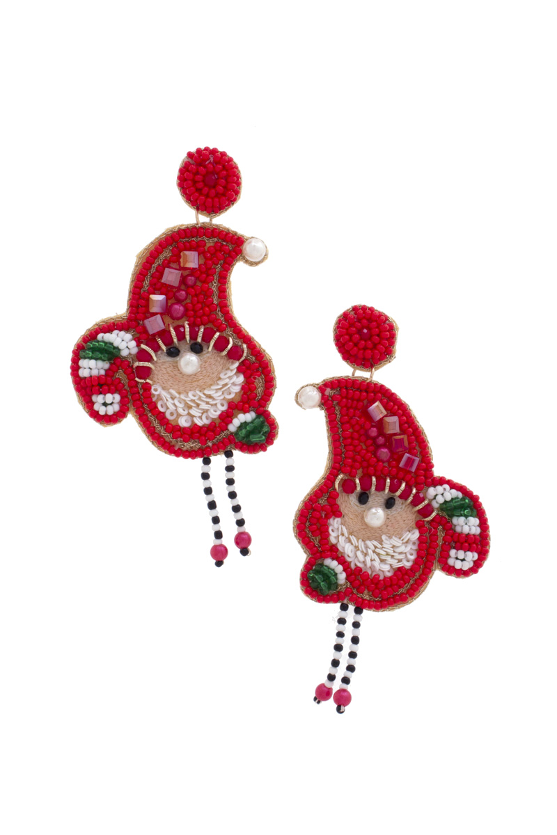CHRISTMAS SEED BEAD THREAD WESTERN STYLE SANTA EARRING