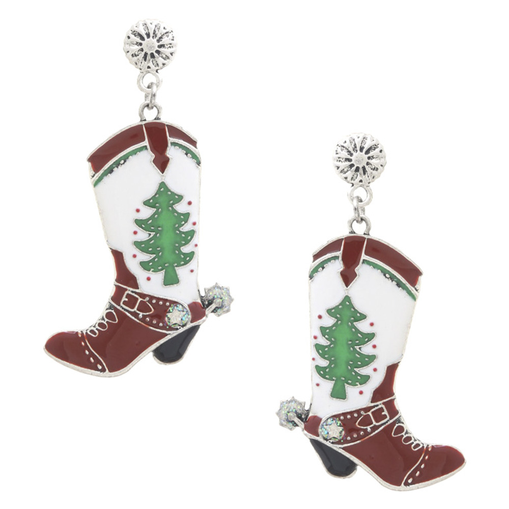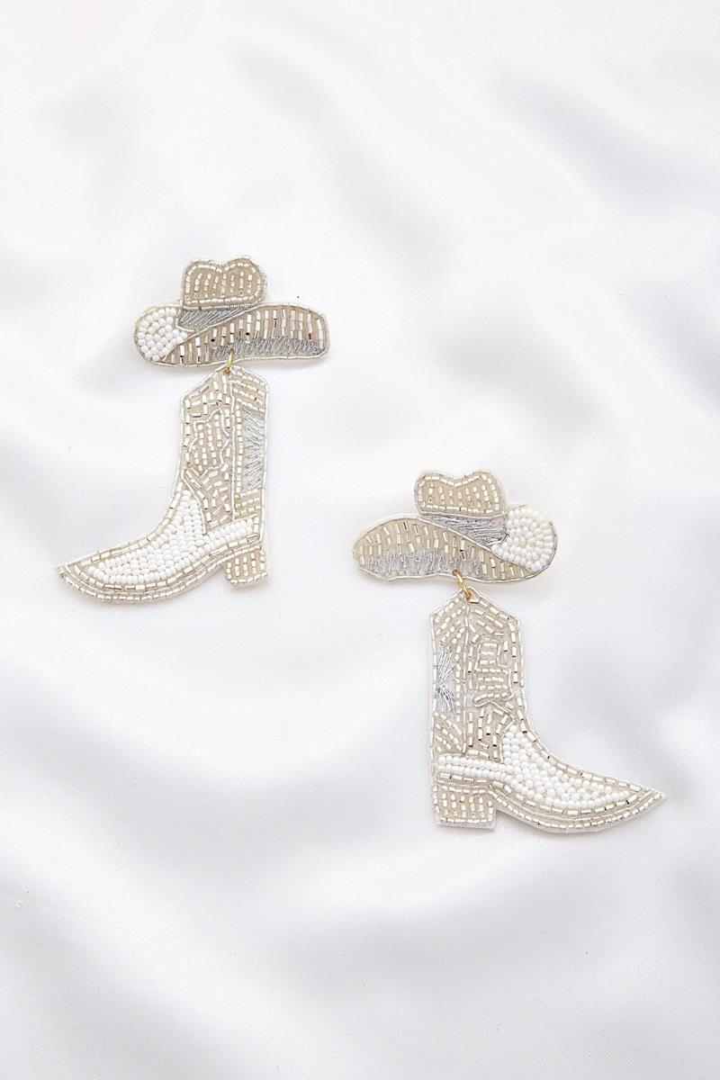 SEED BEAD CHRISTMAS WESTERN STYLE COW BOY HAT DANGLE EARRING